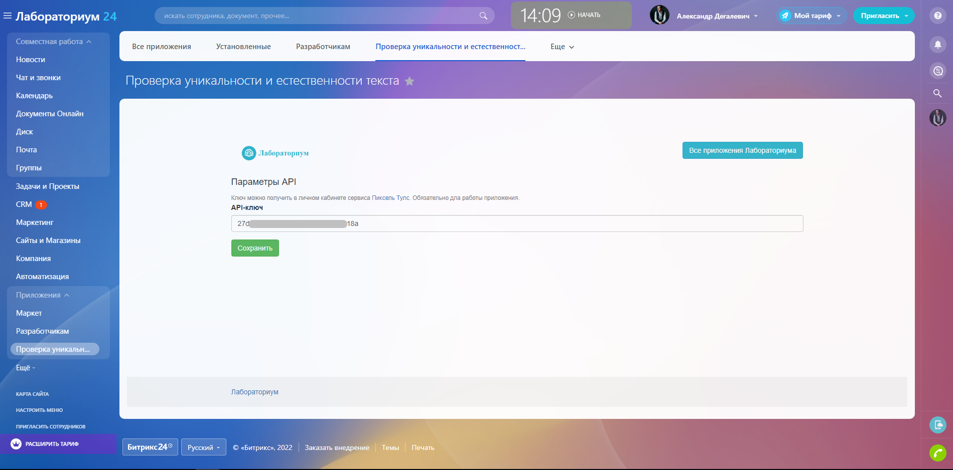 Приложение добавляет на портал роботов и активити для дизайнера бизнес-процессов, которые позволяют проверить текст на уникальность и естественность