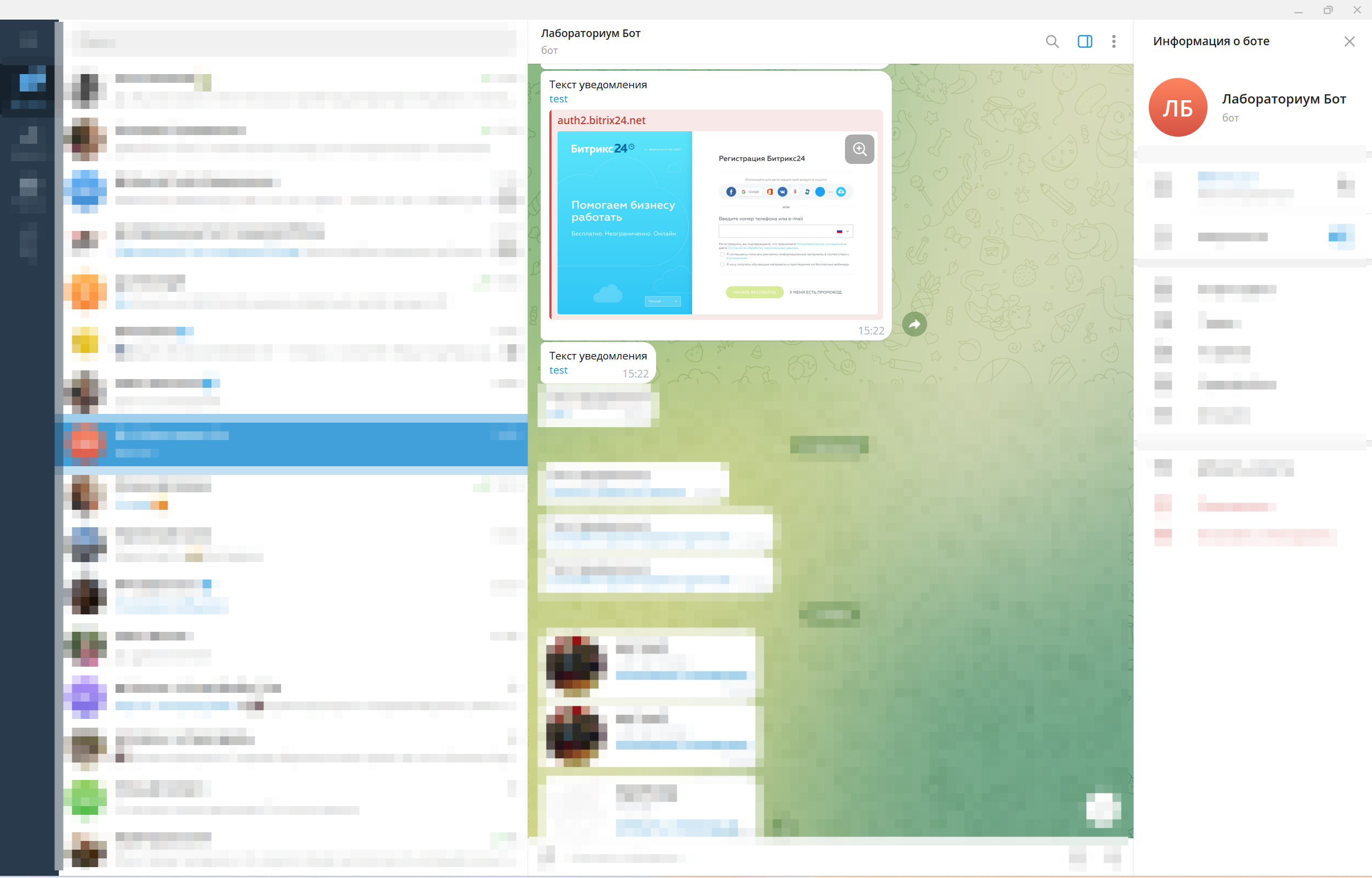 РОБОТ ДЛЯ ОТПРАВКИ СООБЩЕНИЙ В ПРОИЗВОЛЬНЫЕ ЧАТЫ И ГРУППЫДля отправки сообщения в чат или группу Telegram укажите в настройках робота/активити ID этого чата.
