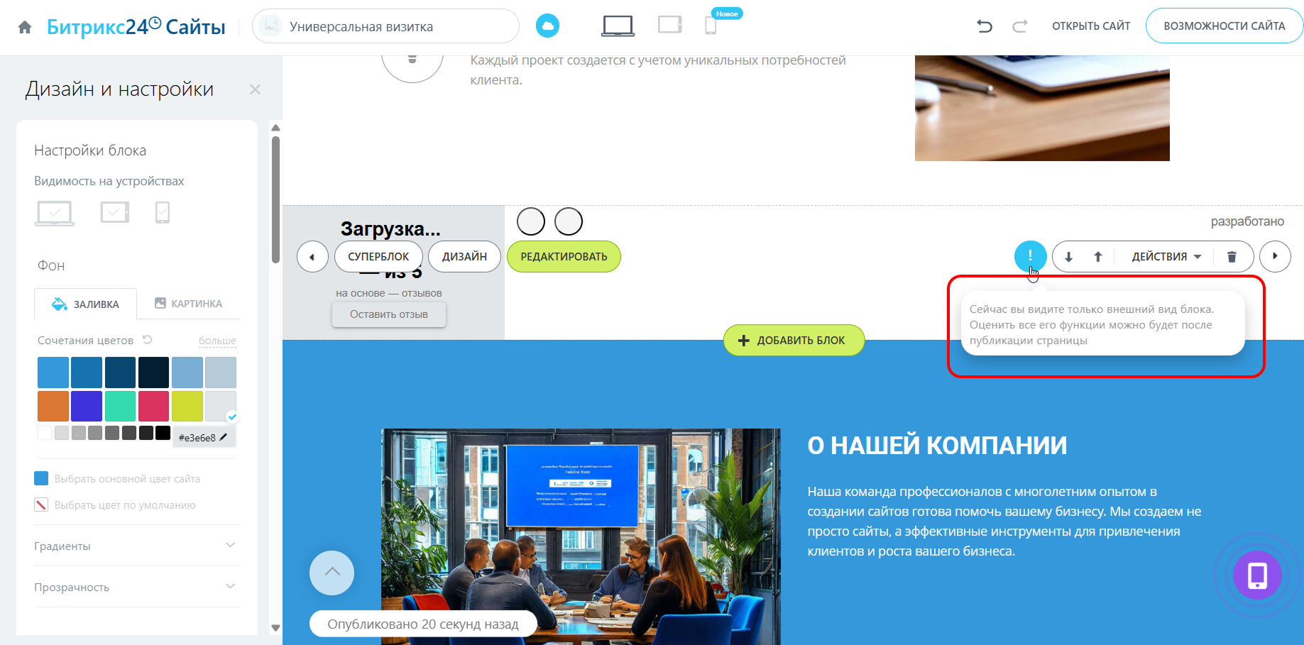 Интуитивный интерфейс: Все настройки доступны прямо в редакторе Bitrix24