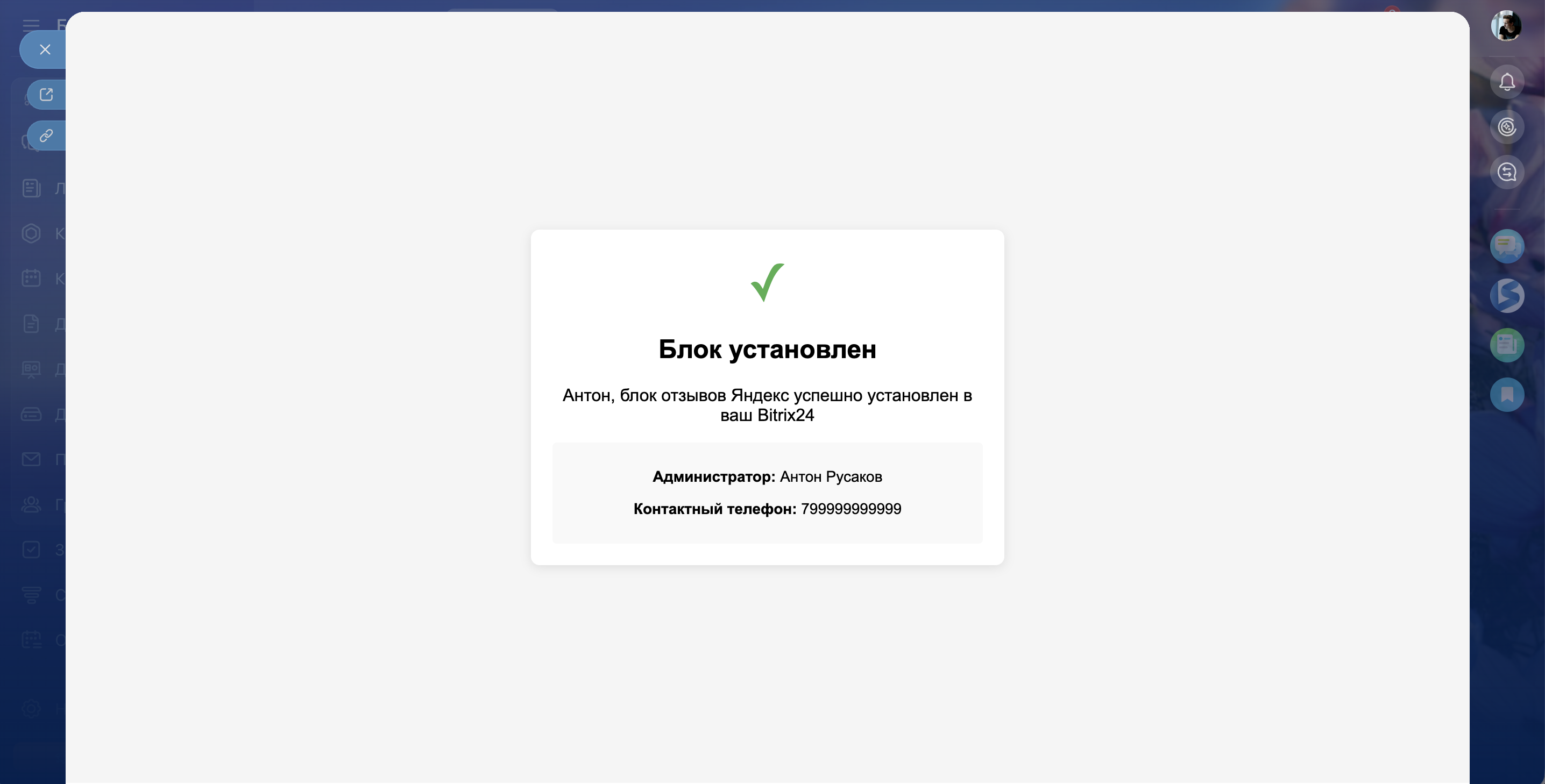 Виджет для отображения отзывов с Яндекс.Карт на вашем сайте в Bitrix24. Автоматическая синхронизация, адаптивный дизайн и гибкие настройки отображения.