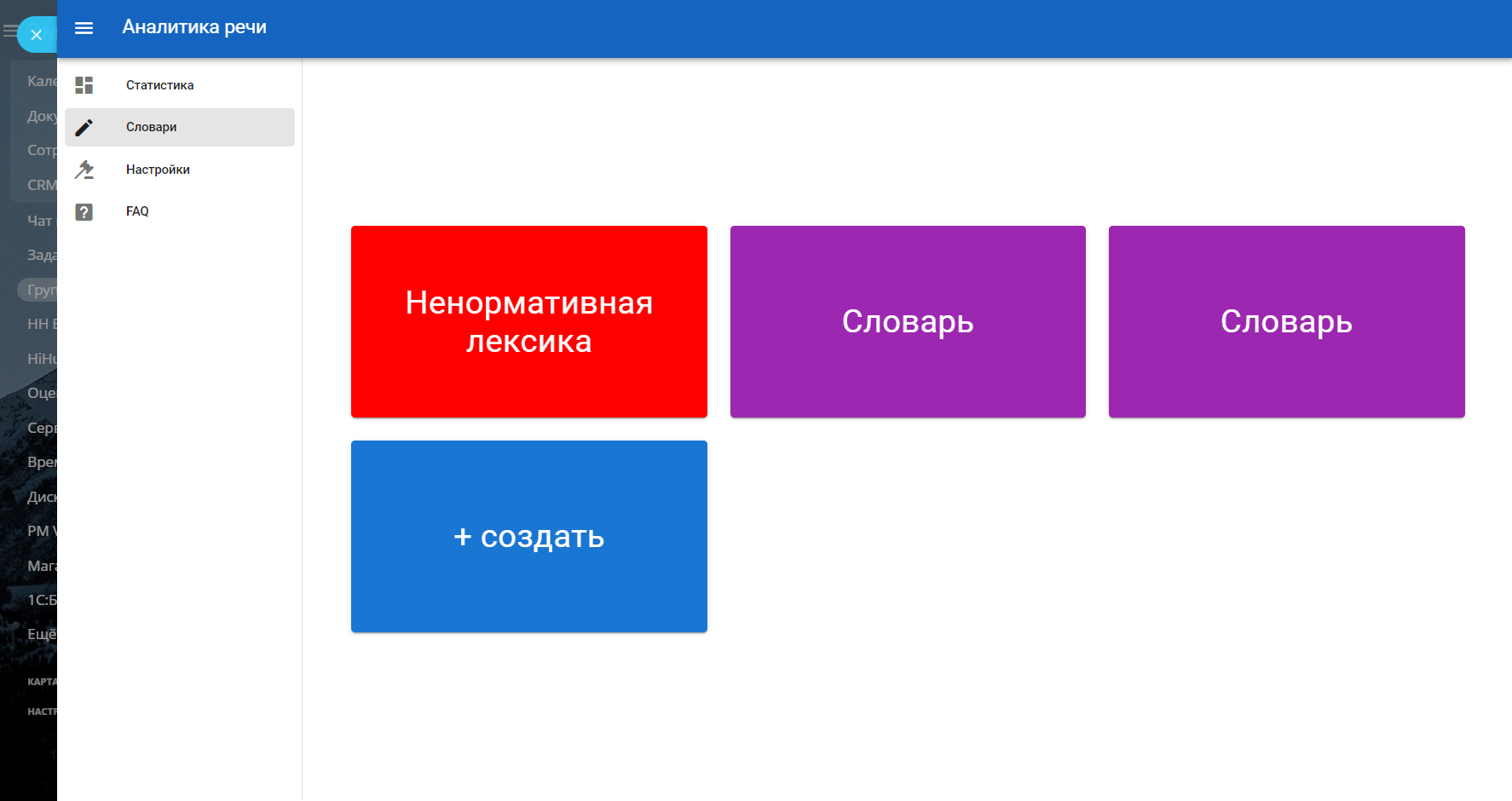 Во вкладке вы можете увидеть уже созданный словарь ненормативной лексики, по которому обучается приложение. Есть возможность добавить свой словарь: ключевые слова для выставления оценки.