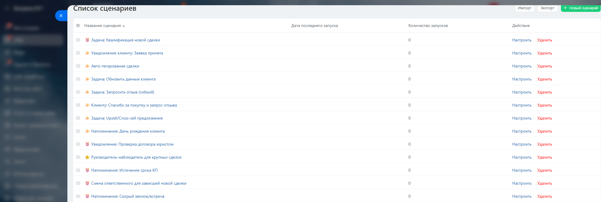 Пак «Сценарии сделок для Отдела Продаж» автоматизирует весь цикл сделки в Битрикс24: от квалификации и уведомлений клиента до контроля КП, оплаты, доставки, повторных продаж и юр-проверок.