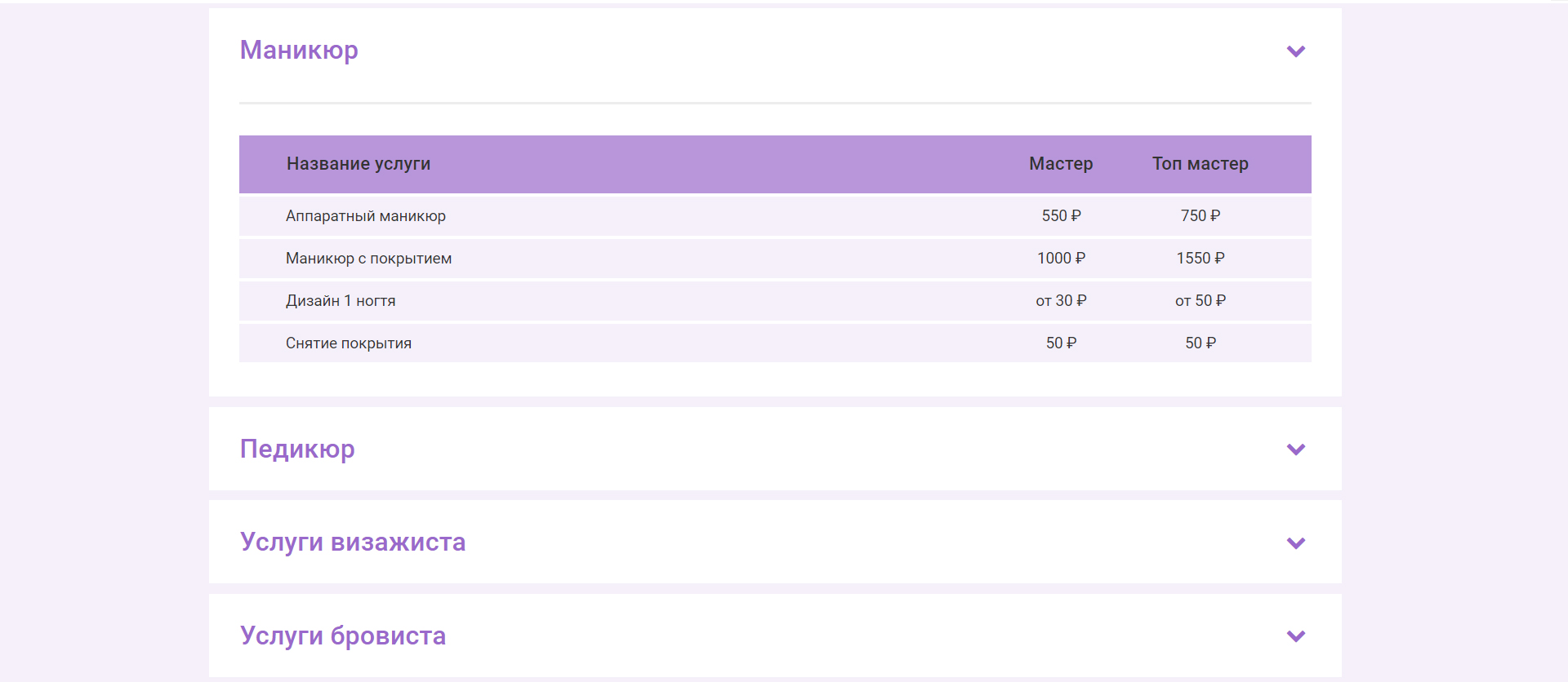 Приложение добавляет 9 блоков с ценами, которые подойдут для любых сфер услуг. У блоков удобные и продуманные десктоп и мобильные версии.