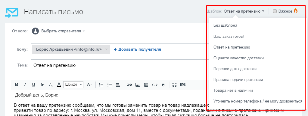 Через 1 день после доставки заказа клиент получит письмо, с просьбой оценить работу вашей компании. По результатам опроса вы сможете улучшить свою работу! А если менеджер проиграл сделку - вы узнаете почему.