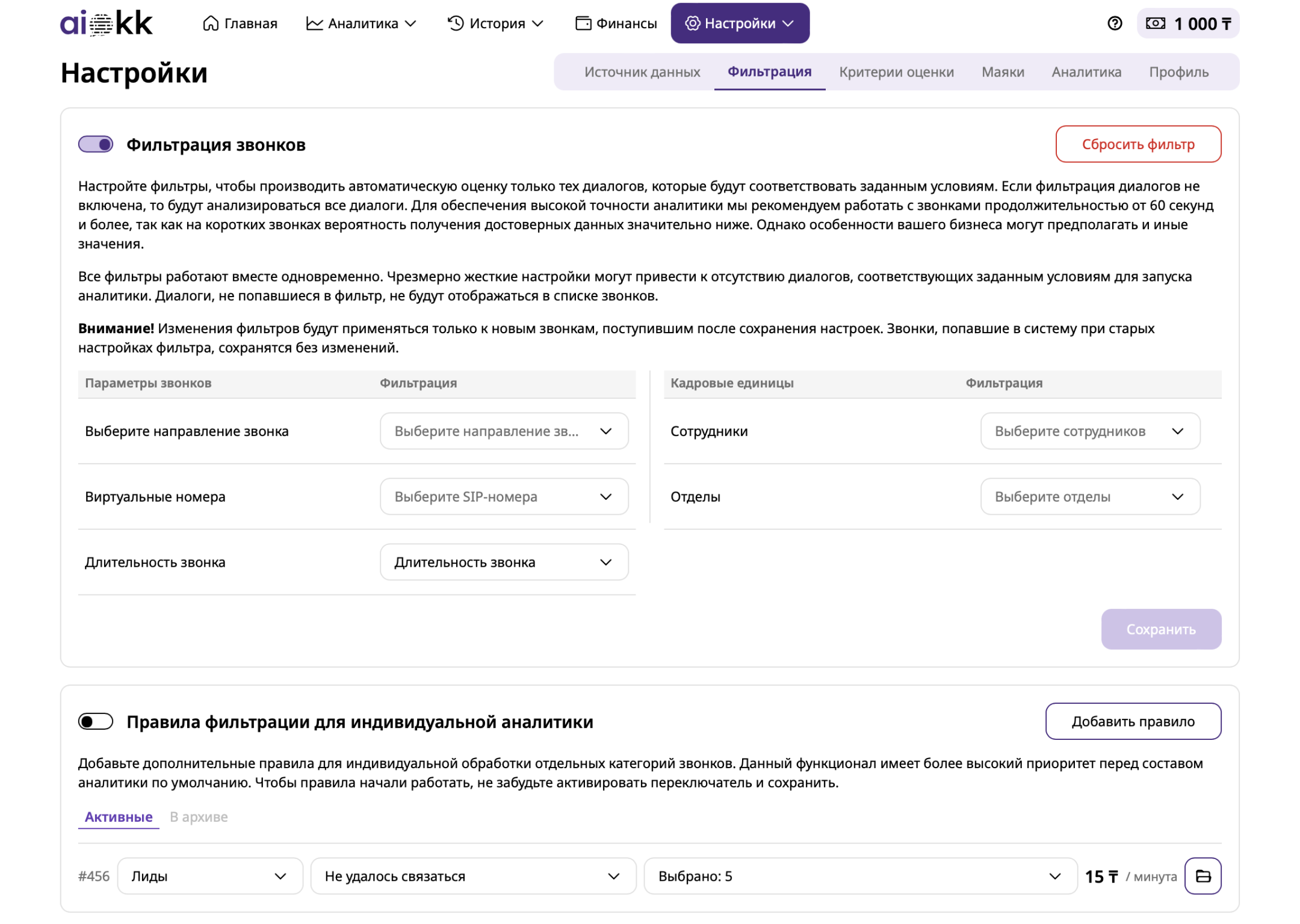 - Встроенные возможности гибкой фильтрации звонков перед отправкой на проверку.