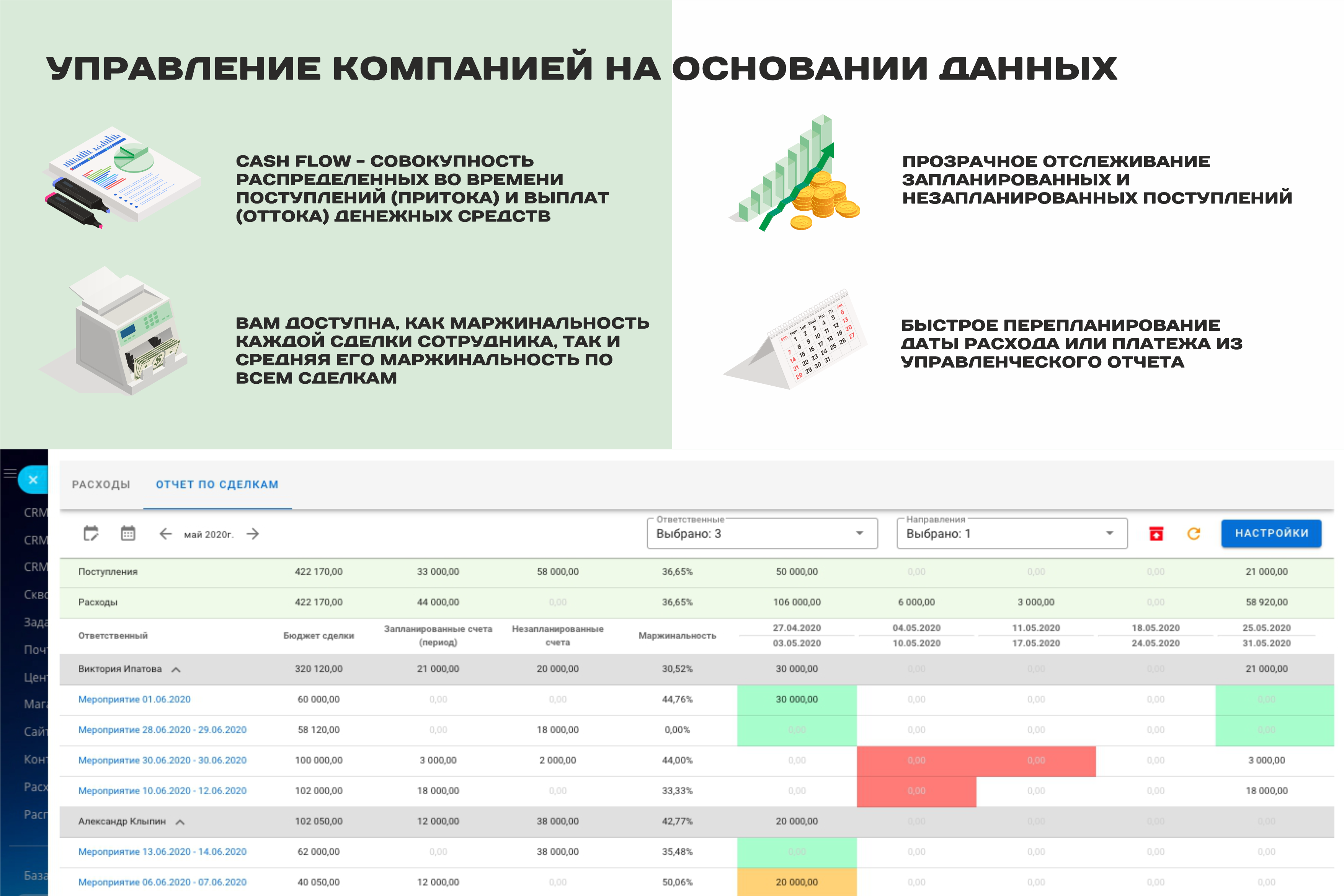 - Прозрачное отслеживание запланированных и незапланированных поступлений;