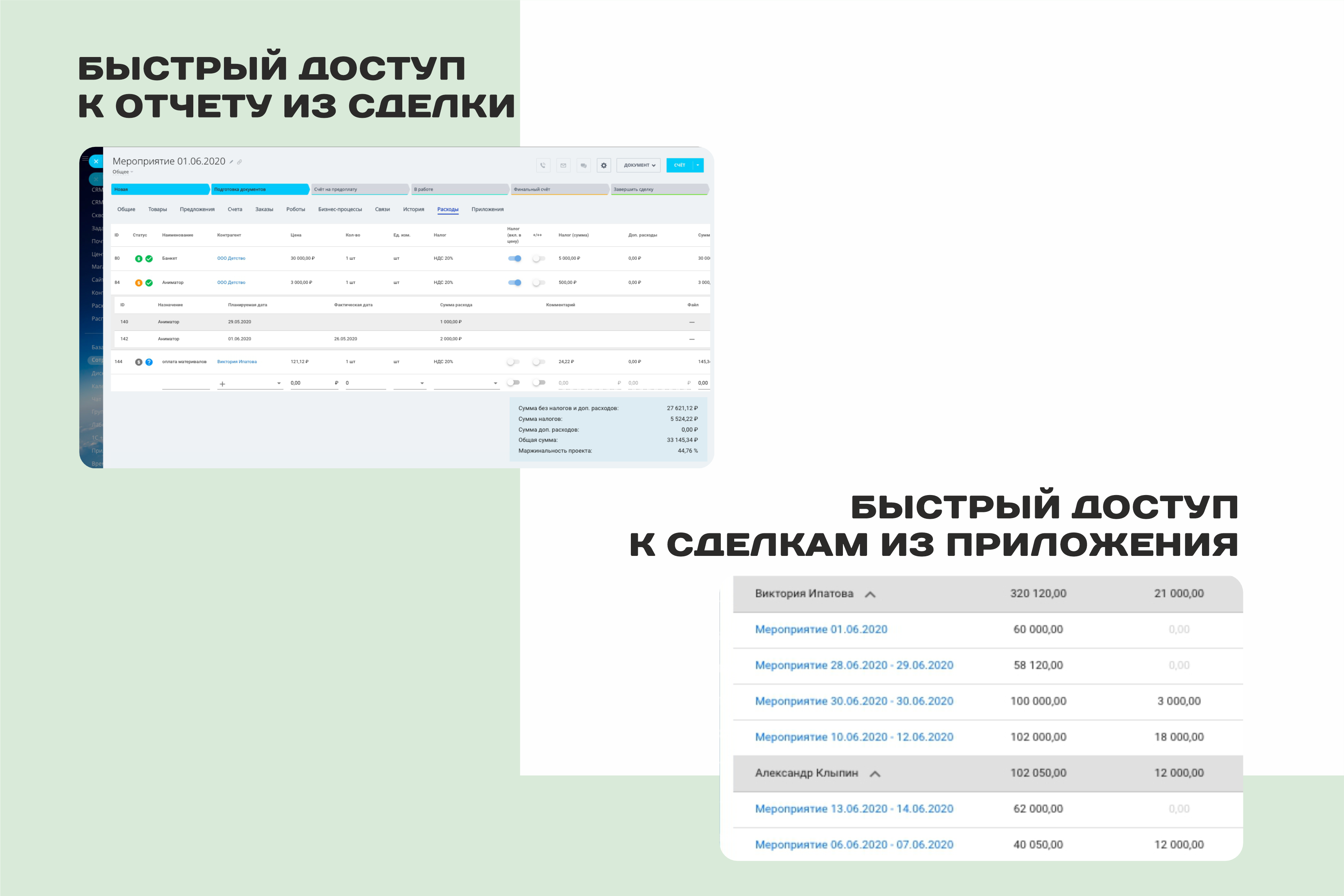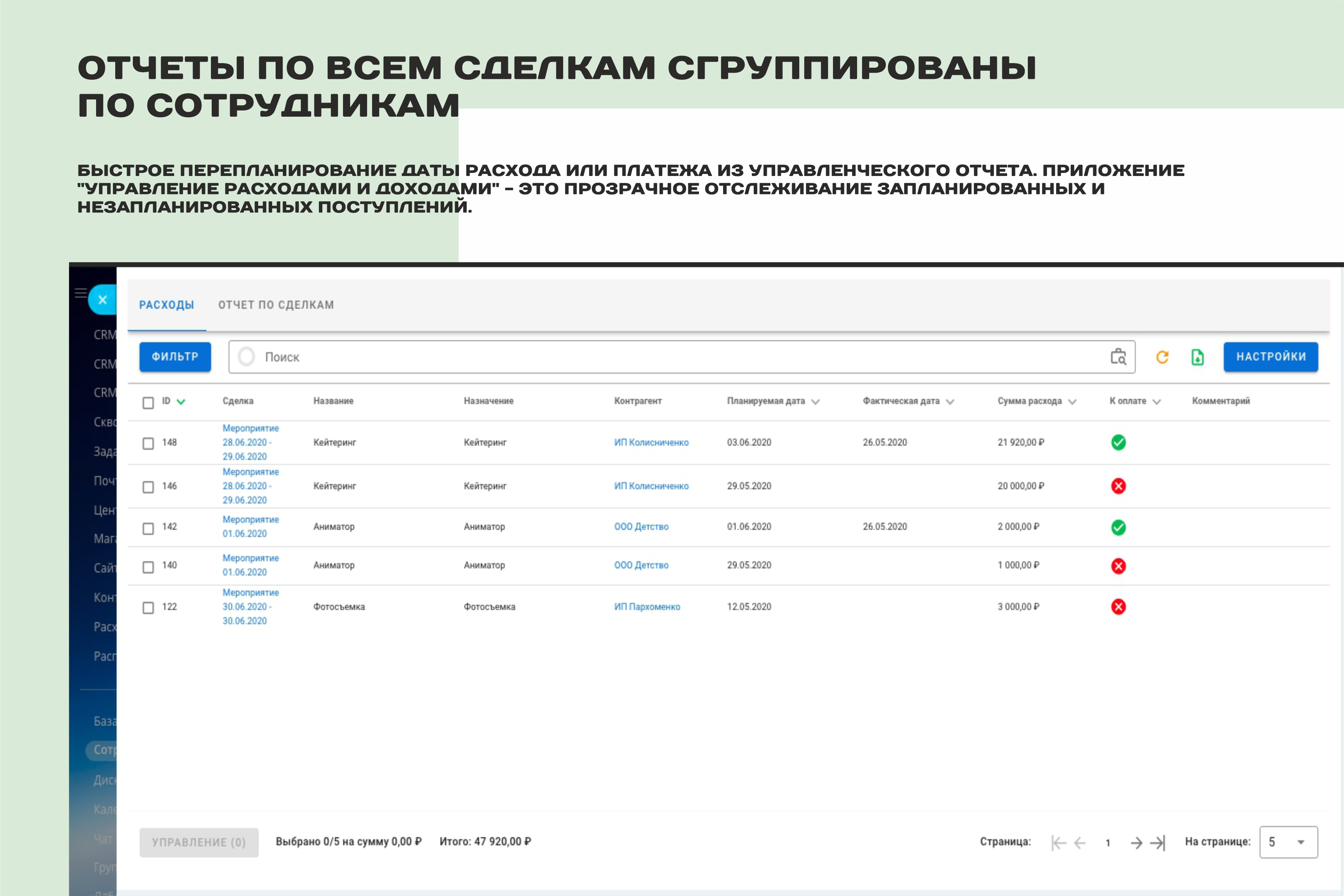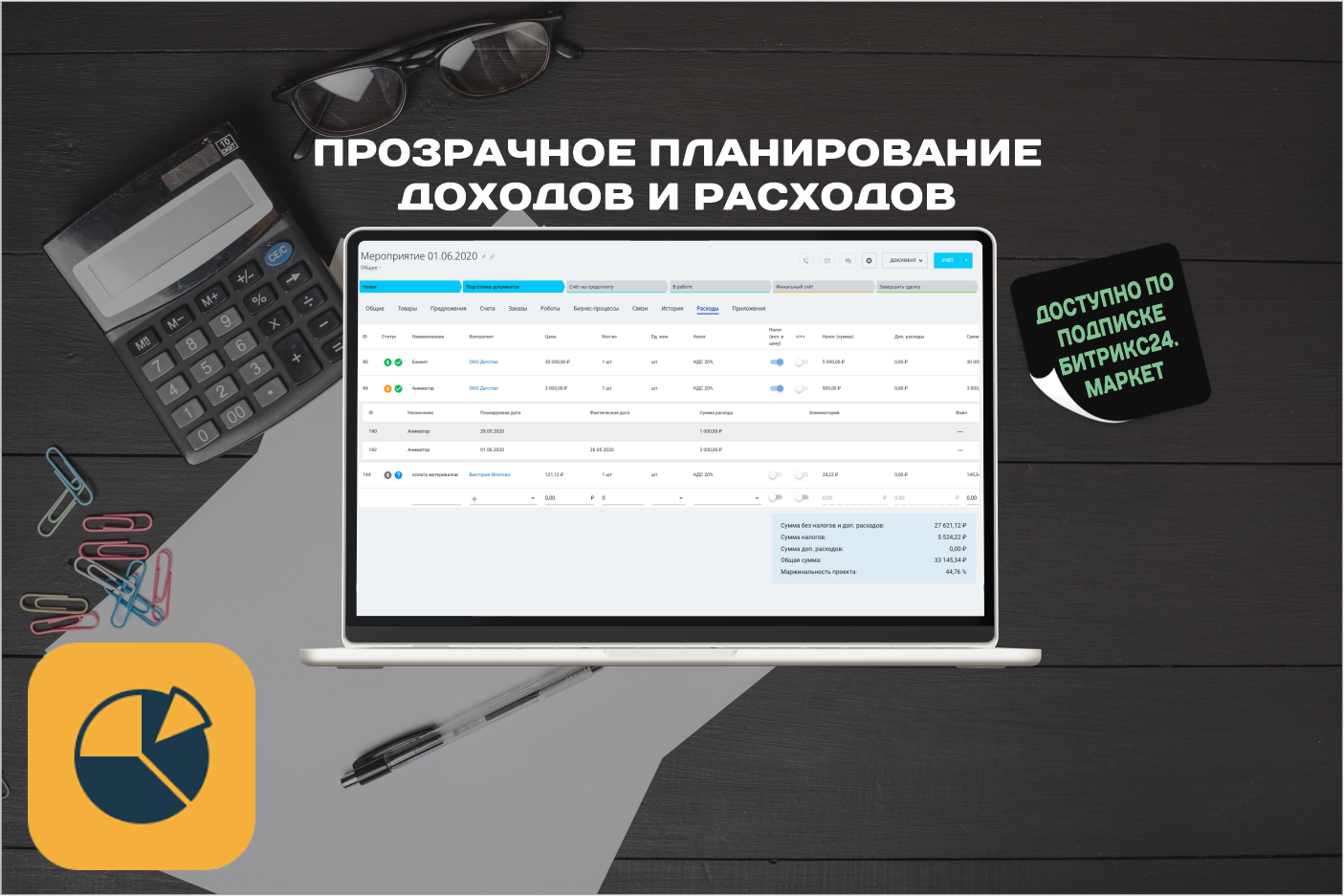 Приложение “Управление расходами и доходами по сделкам” и Битрикс24 в совокупности позволяет настроить процесс по управлению и контролю расходов, поступлений и подсчету маржинальности по вашим сделкам.