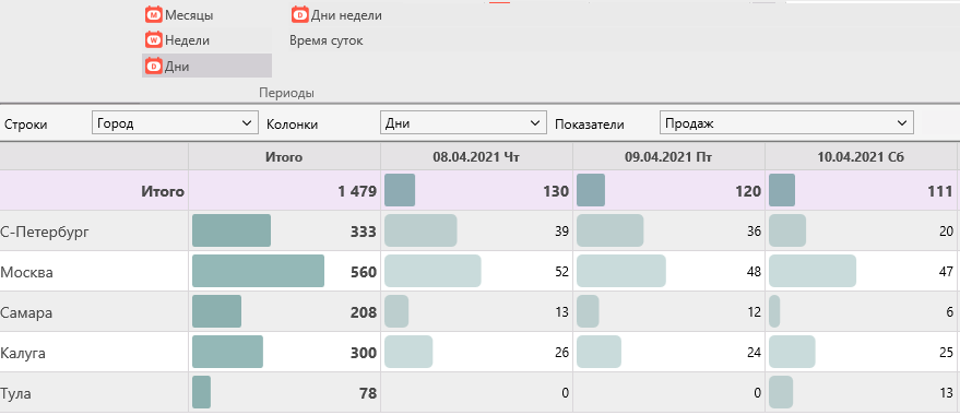 - Сразу видны основные показатели по всем разрезам в инновационном интерфейсе “Полная сводная таблица”.
