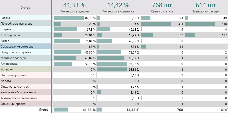 - Статусы Лидов - анализ продолжительности статусов лидов в разрезе
