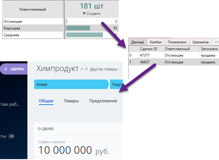 - Сделки - отчеты с переходом на конкретную сделку в Битрикс24 Подробнее