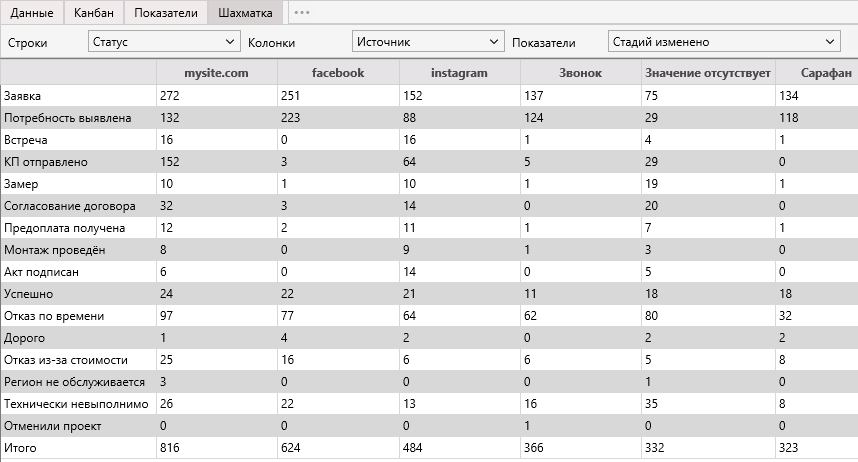 Благодаря поддержке любых параметров, включая Источники и UTM, программа является мощнейшим инструментом сквозной аналитики, позволяющим понять, какие маркетинговые каналы (источники лидов) приносят прибыль, а какие из них убыточны. Вы можете узнать, какие кампании и ключевые запросы Yandex Direct, Google Adwords, Вконтакте, facebook* приносят прибыль, а какие задерживаются на определённых стадиях лидов.