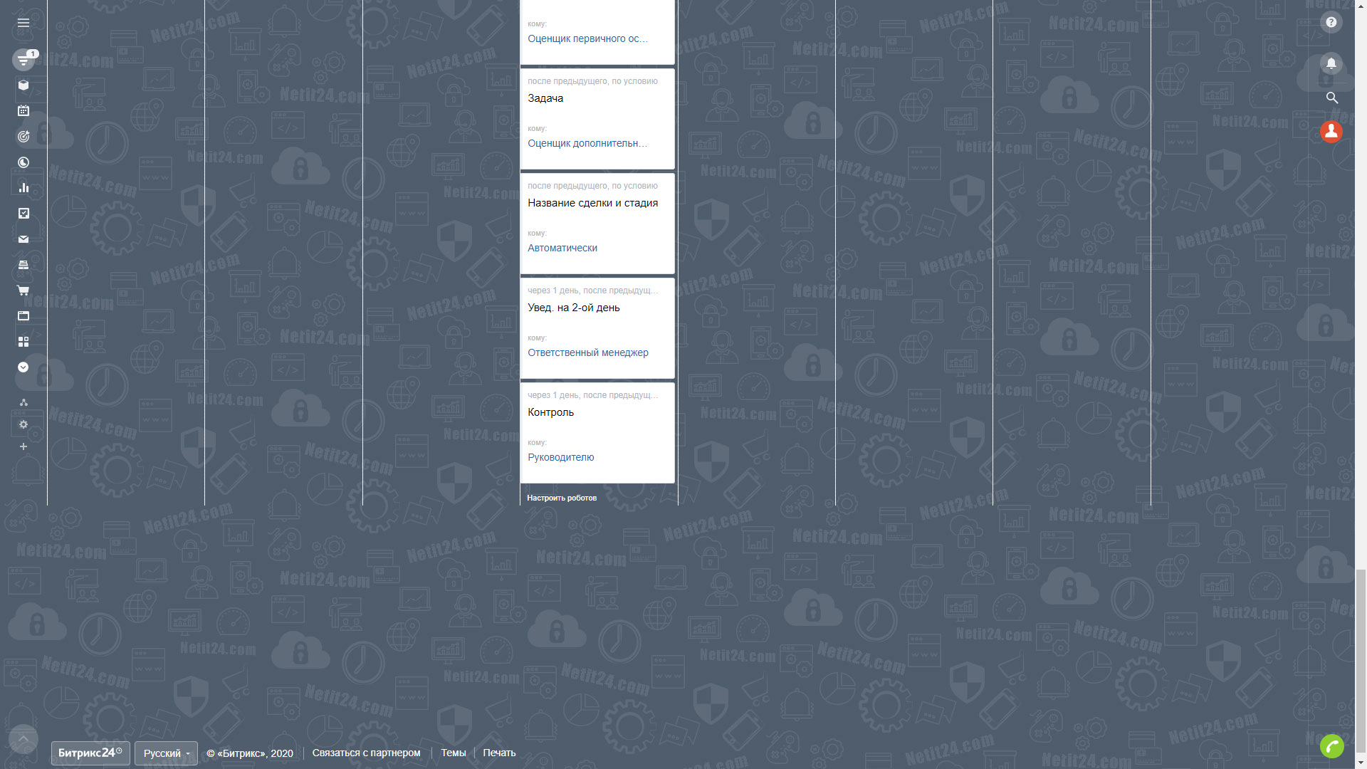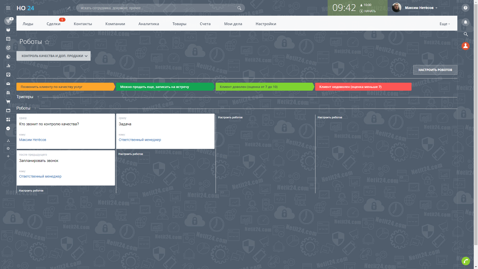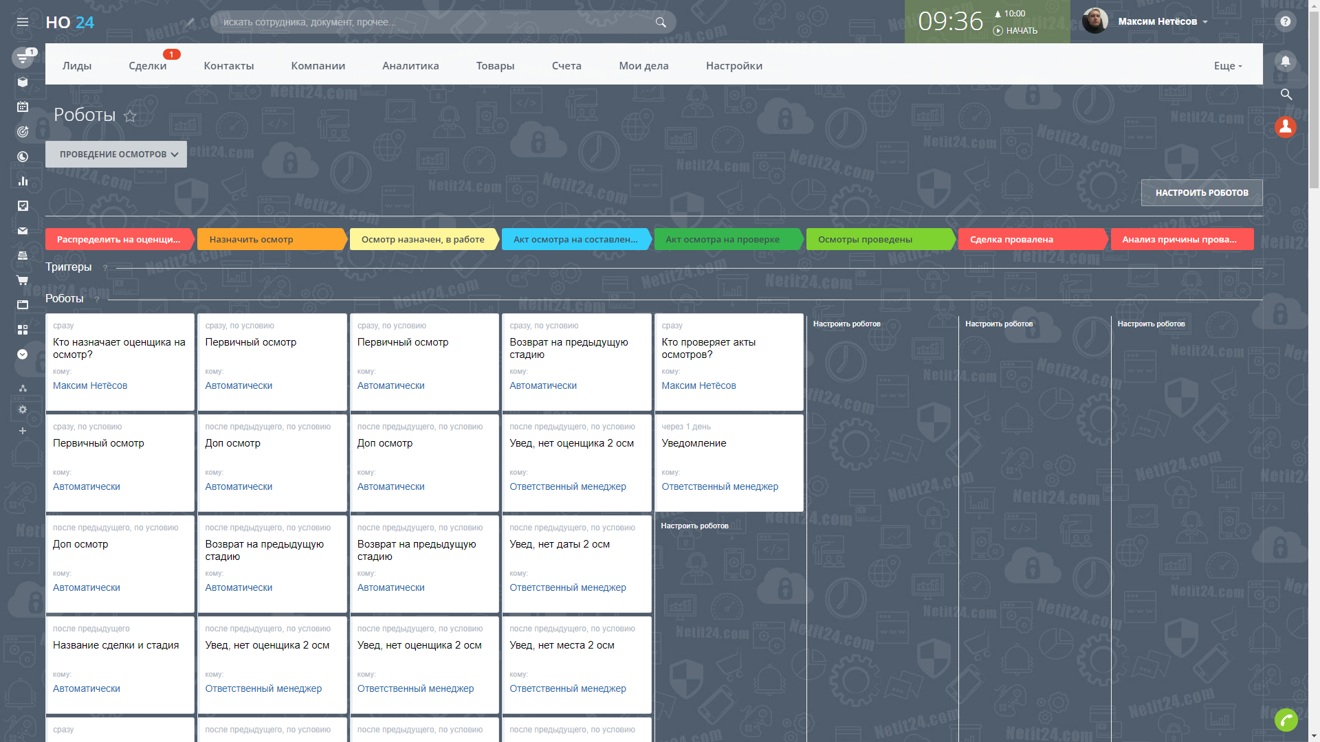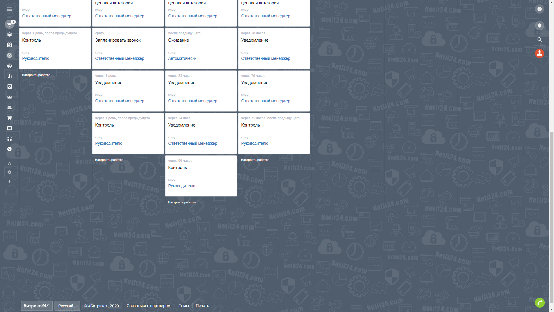 - роботы-уведомления на этапах поступления заявок/сделок по основным этапам работы с клиентами.