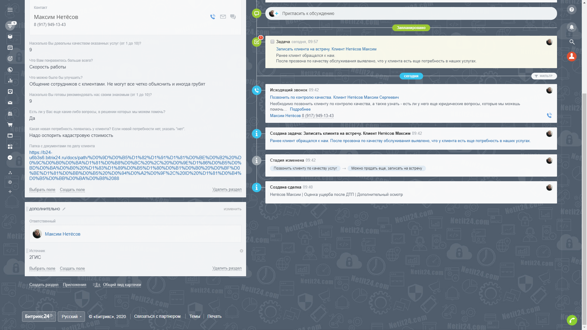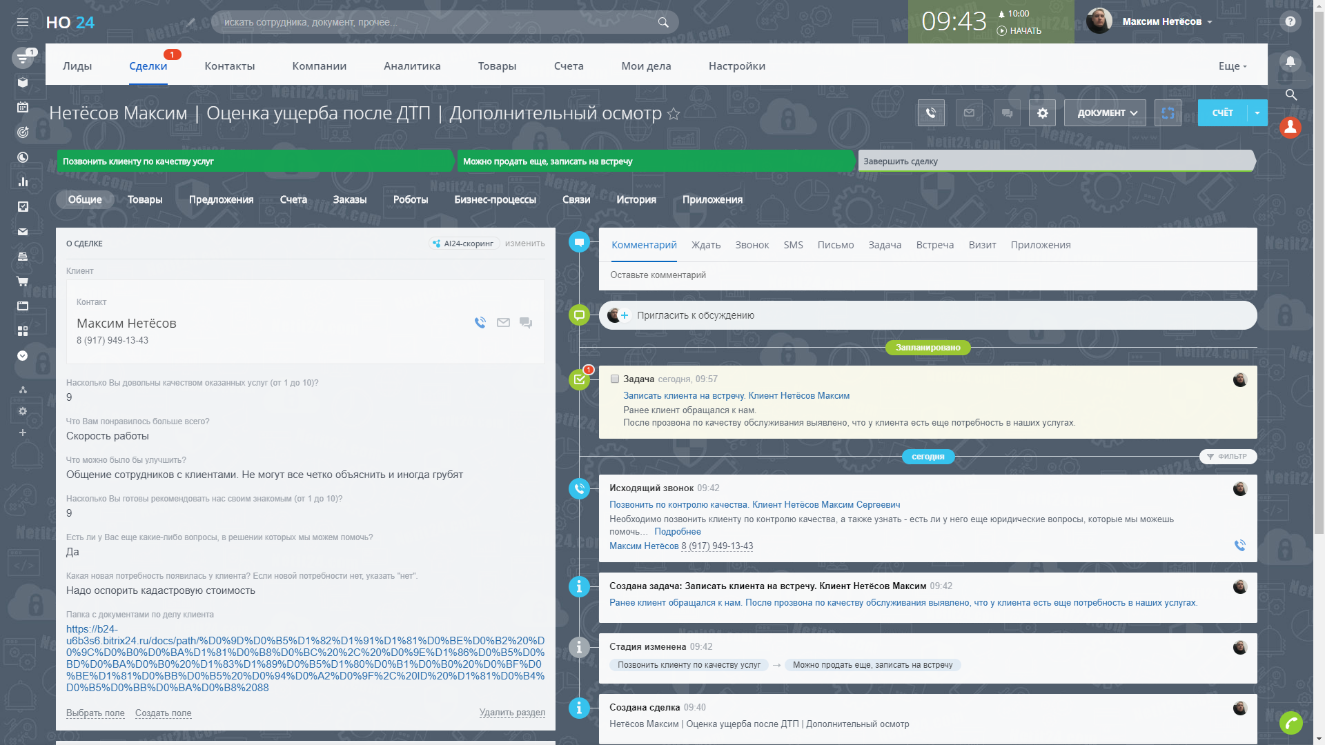- система сама ставит задачи сотрудникам на каждом этапе работы с клиентом;