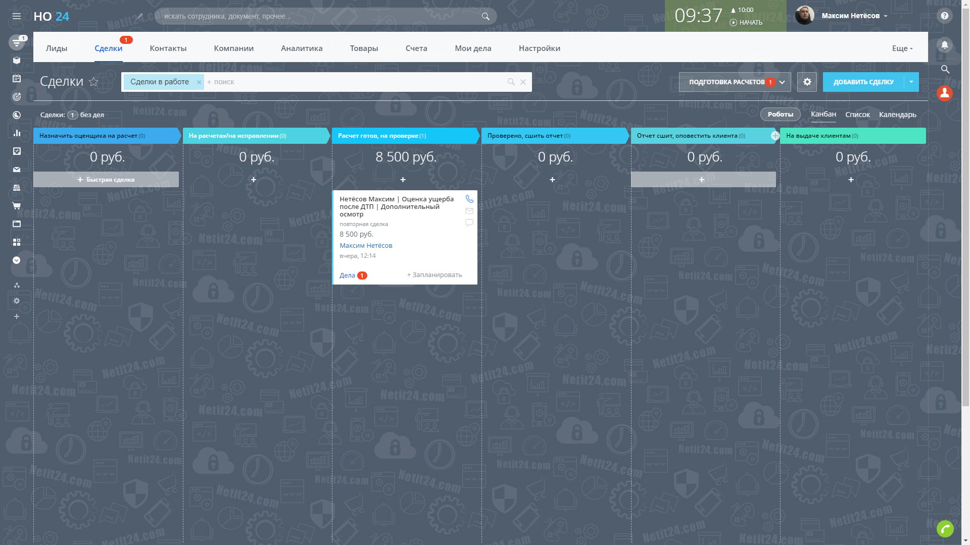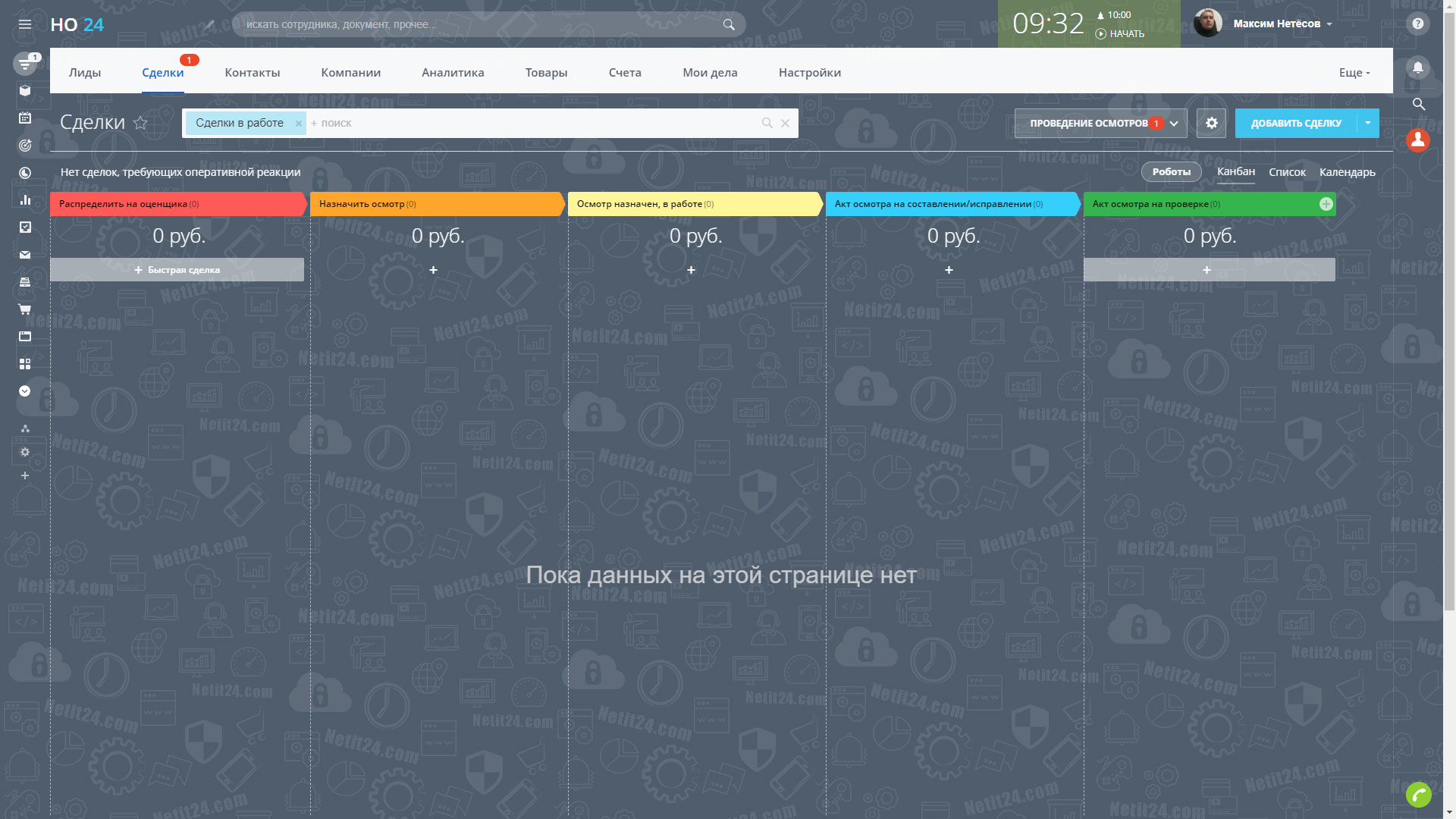 - Доступна воронка "Подготовка расчетов" (стадии - "Назначить оценщика на расчет", "На расчетах/на исправлении", "Расчет готов, на проверке", "Проверено, сшить отчет", "Отчет сшит, оповестить клиента", "На выдаче клиентам") - для полного контроля работы оценщиков, проводящих расчеты, а также сотрудников, кто сшивает и выдает готовы отчеты об оценке;
