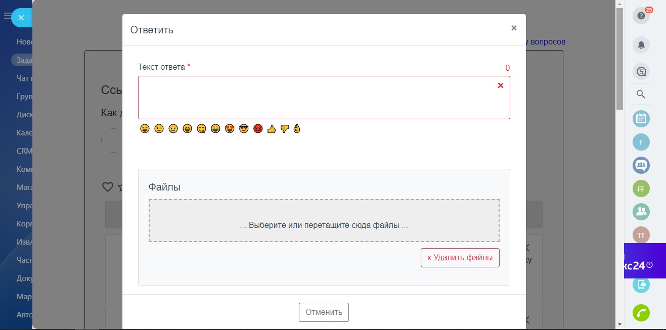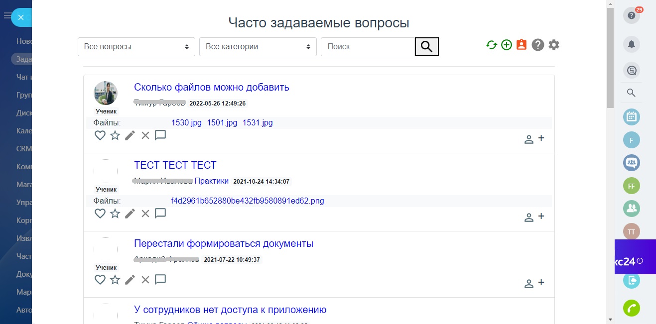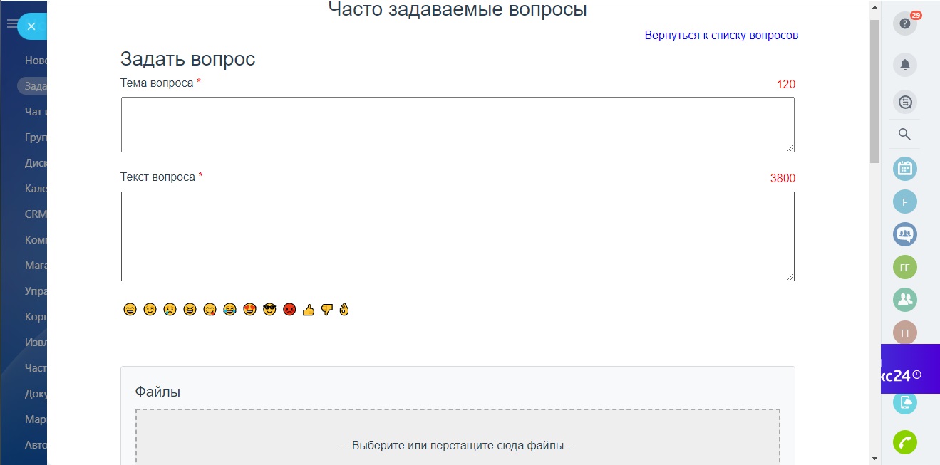Приложение «Часто задаваемые вопросы» предназначено для формирования корпоративной библиотеки вопросов и ответов. Это простой и удобный инструмент создания корпоративной базы знаний.