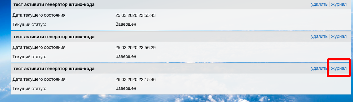 - Комментарий в таймлайн (Список из значений Да/нет. Если выбрать ДА, то в карточку сущности будет записано соответствующее событие генерации штрих-кода. см. скрин.)
