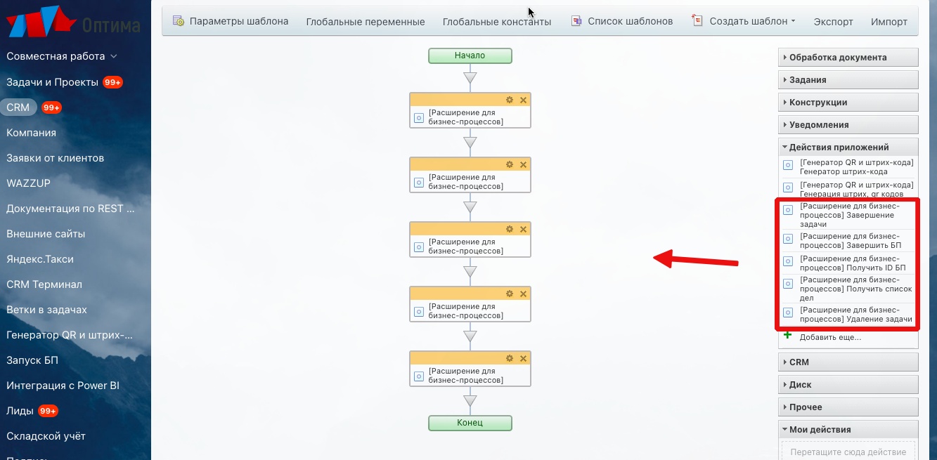 Данное приложение расширяет возможности штатных действий в бизнес-процессах Битрикс24 и позволяет реализовывать другие сценарии работы.