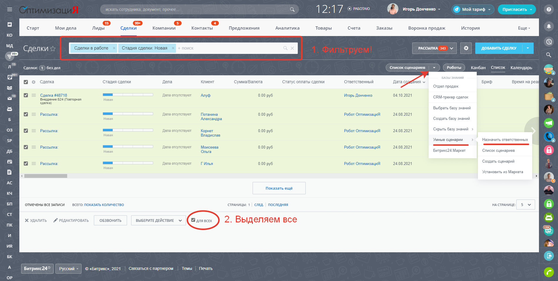 - Вы отфильтровываете сделки с использованием умного фильтра в сделках.