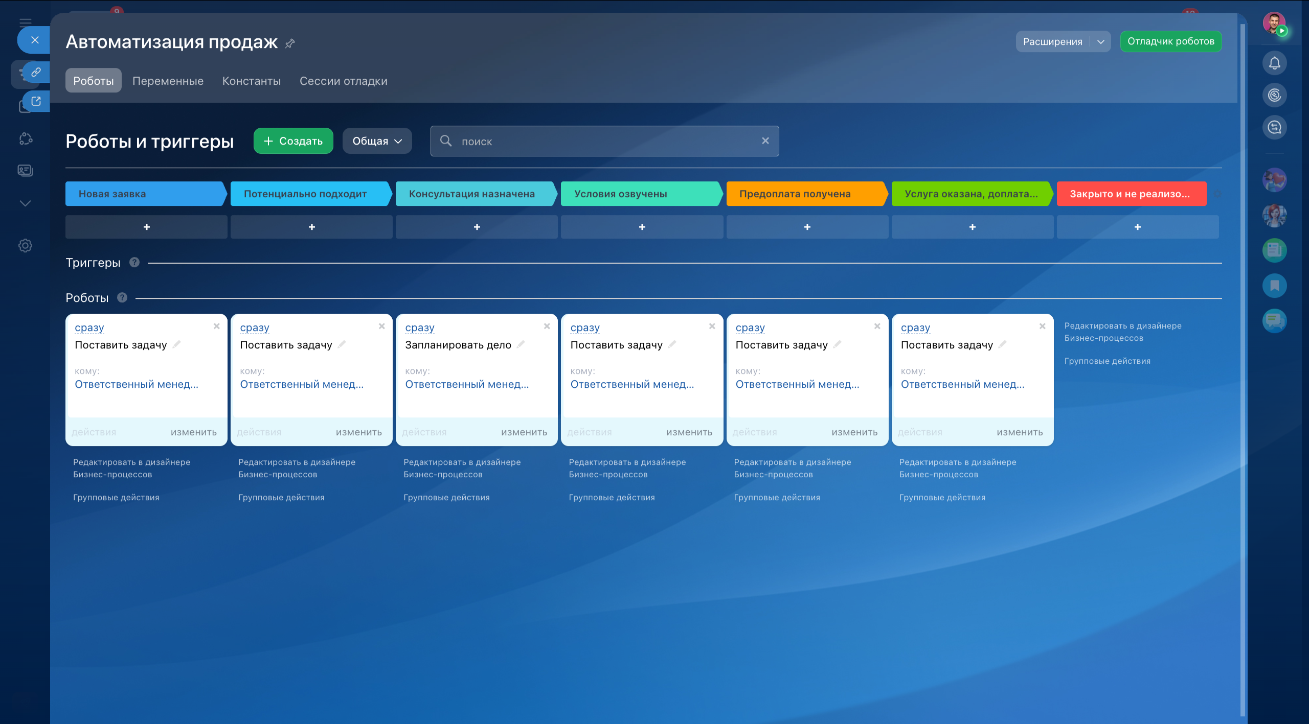 На каждой из этих стадий роботы автоматически создают задачи и дела, чтобы вести вас по шагам. Детальнее смотрите в видео выше.