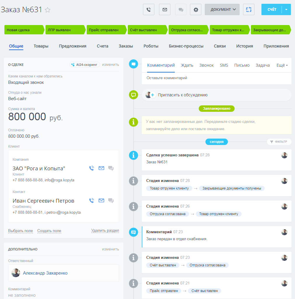 - Забывчивость и у отдела продаж, и у снабжения. Чтобы сотрудники не упустили из виду важные дела, CRM-система ведёт по шагам и менеджеров по продажам, и снабженцев.