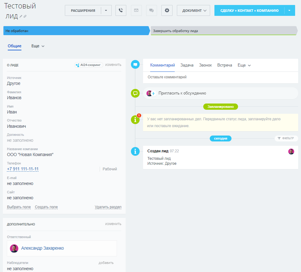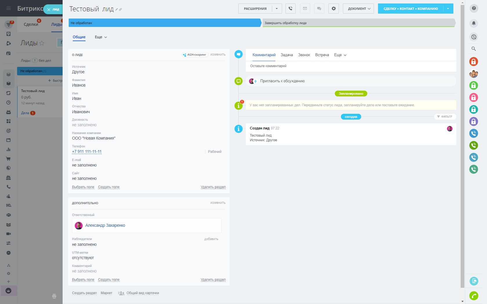 - обязательность заполнения полей, чтобы менеджеры не забыли занести нужные данные.