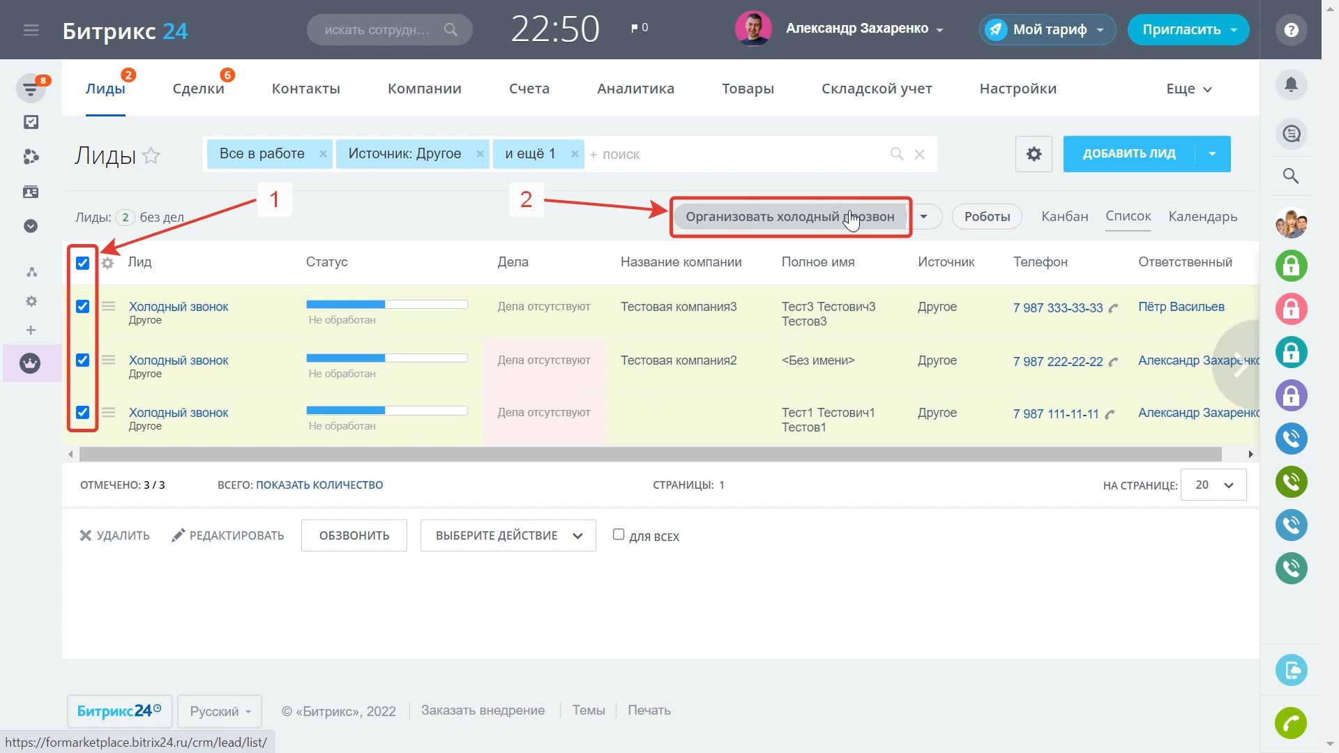 3. Выделяете нужное и нажимаете «Организовать холодный обзвон»: