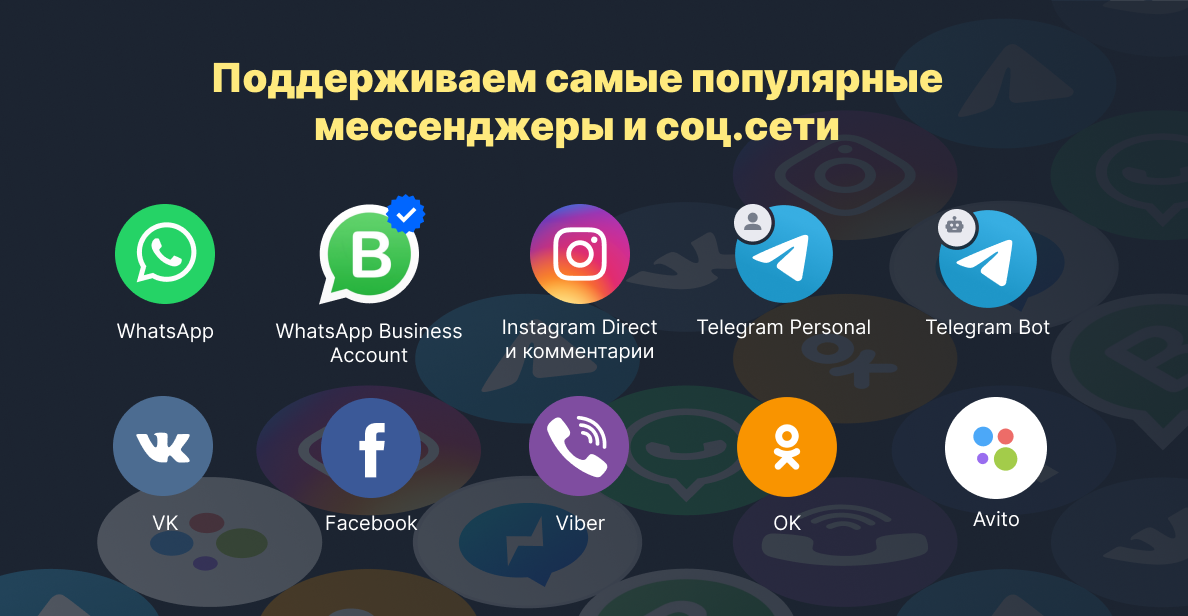 - При обращении клиента в другой мессенджер, менеджер будет в курсе предыдущего запроса