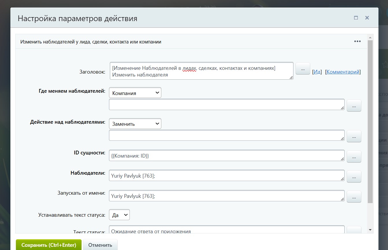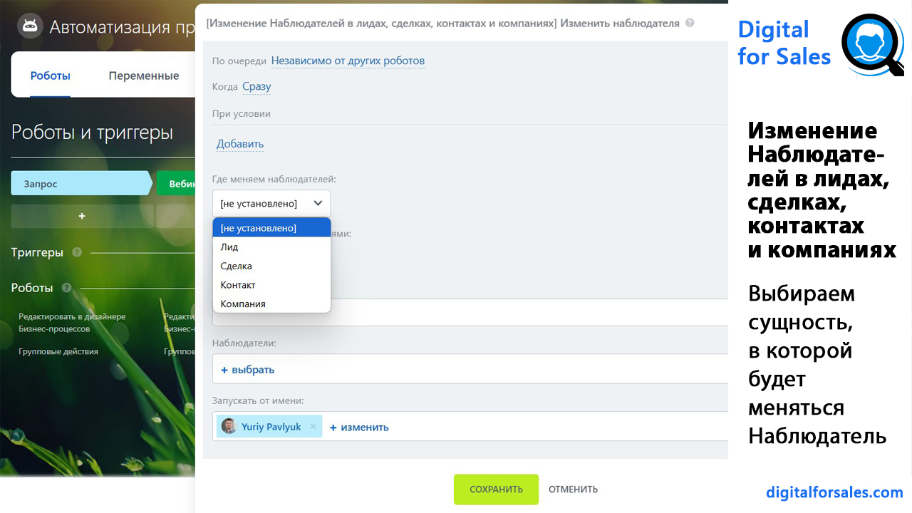 Изменение Наблюдателей в лидах, сделках, контактах и компаниях