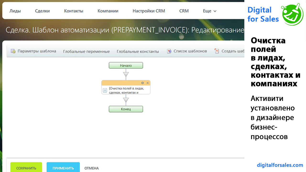 Активити и робот для очистки полей CRM: обнуляет текст, списки, чекбоксы...