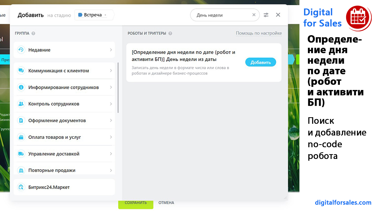 Текстовая версия видео: https://digitalforsales.com/case/opredelenie-dnya-nedeli-po-date-robot-i-aktiviti-bp