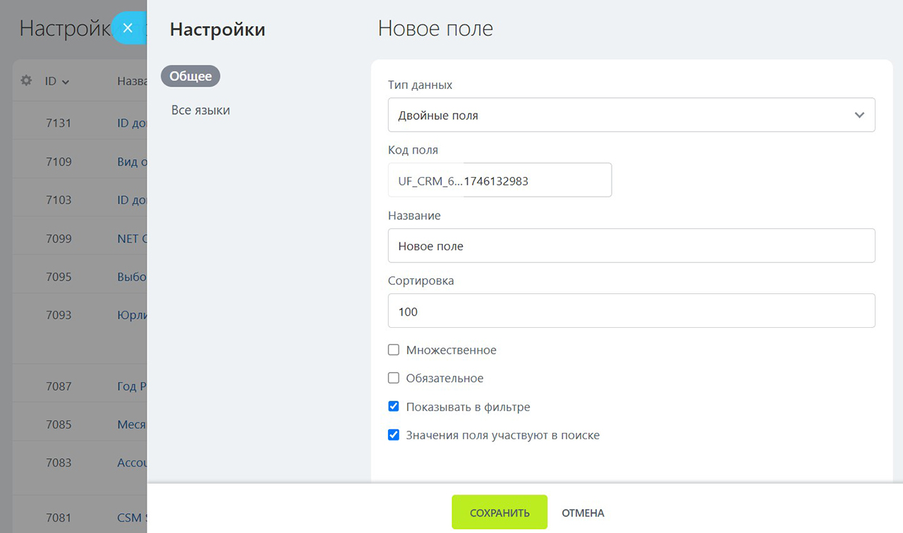 Двойные и тройные поля (2 в 1, 3 в 1) в Лидах, Сделках и Смарт-процессах