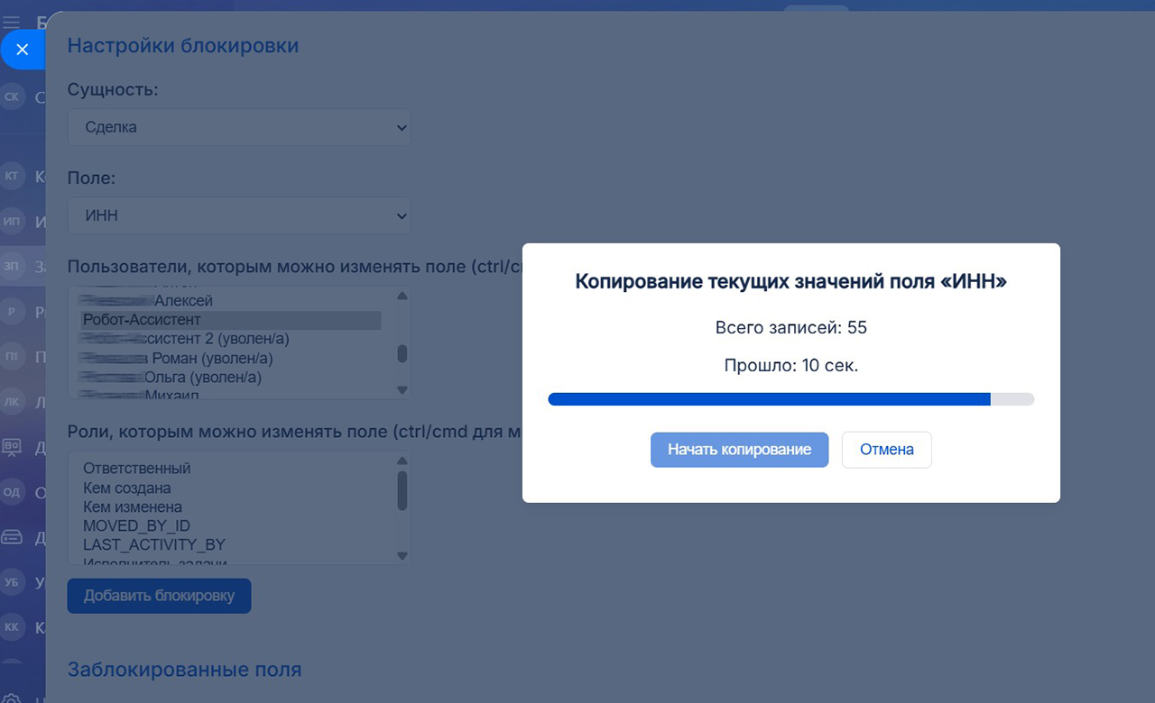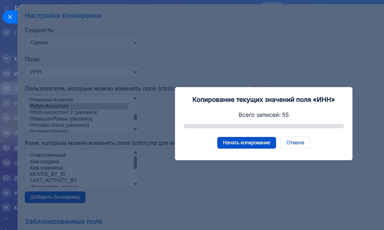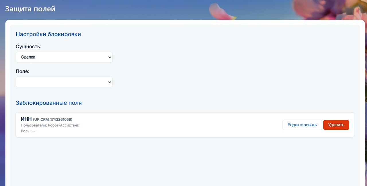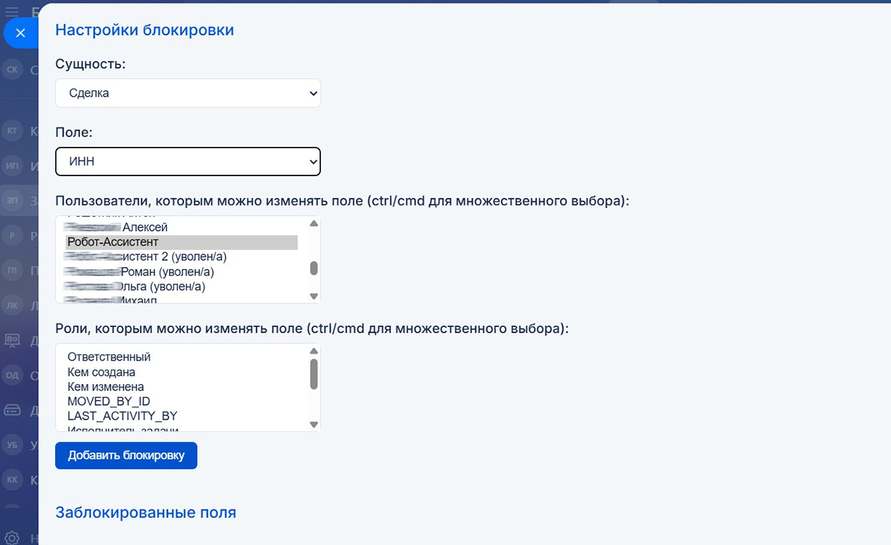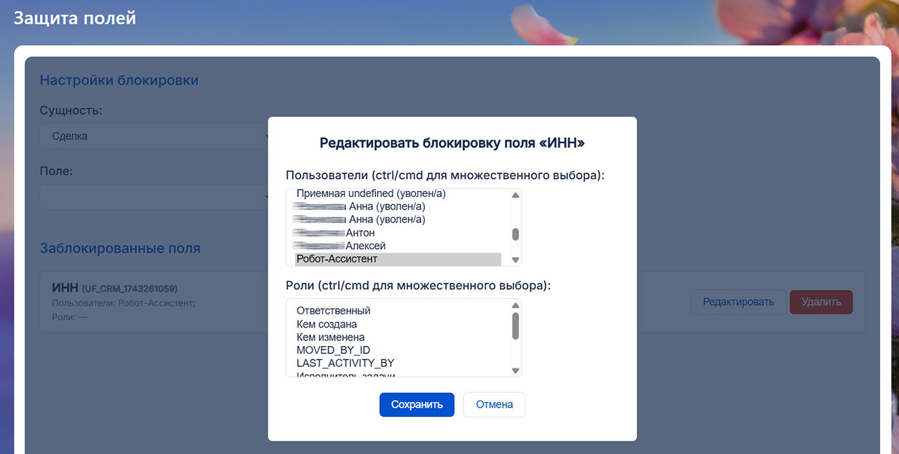 Укажите, какие поля следует защитить, кому можно их редактировать (конкретные фамилии и/или роли). Зафиксируйте текущие значения этих полей – и с этого момента начнется магия…