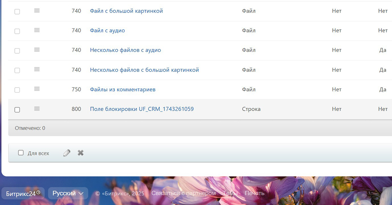 Защита выбранных полей от изменения (настраиваемый список)