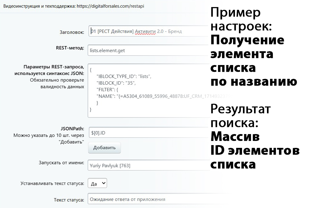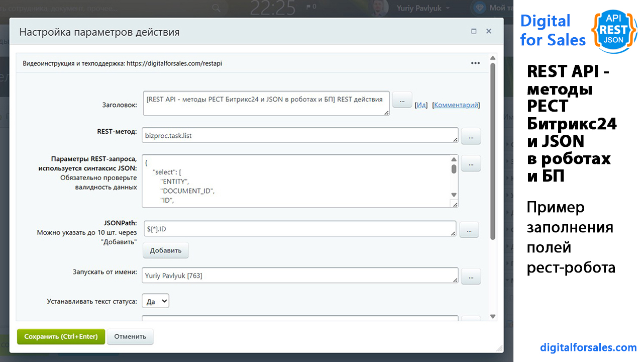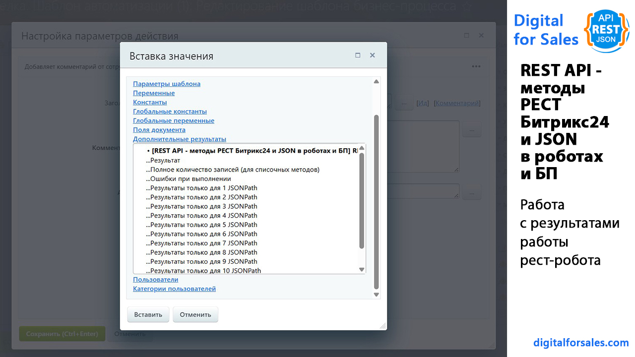REST API - методы РЕСТ Битрикс24 и JSON в роботах и БП