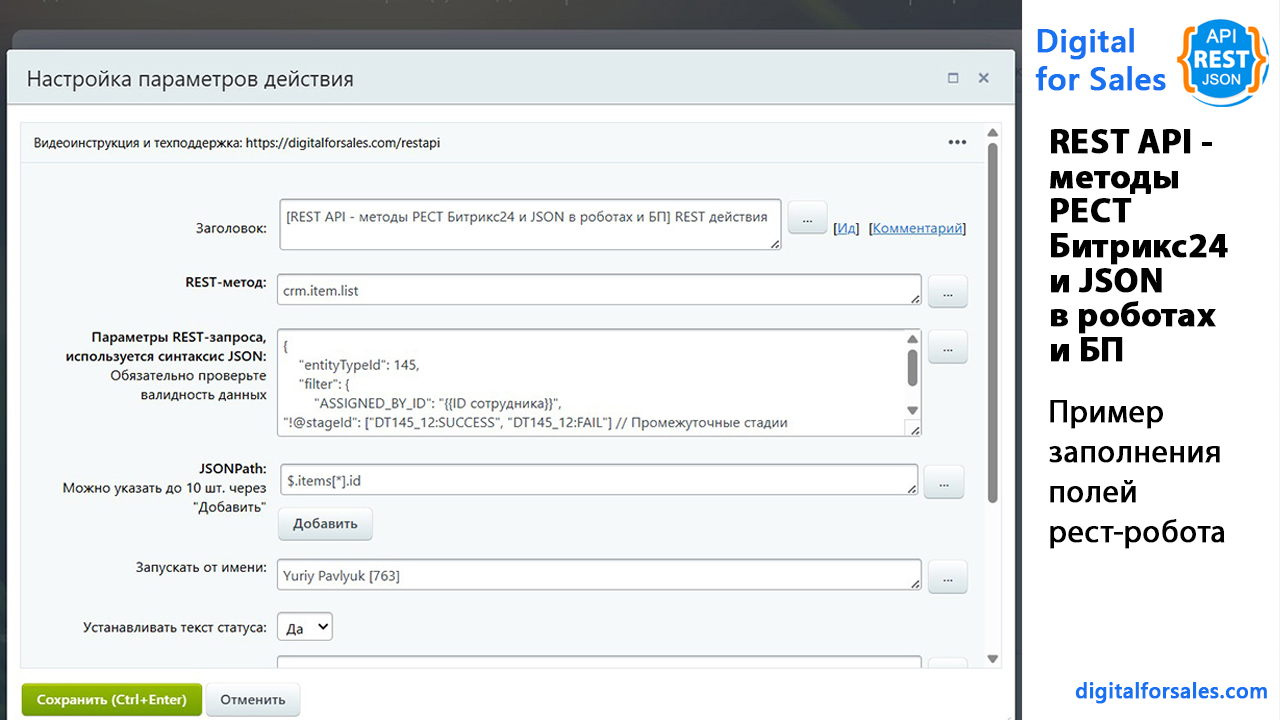 Лендинг приложения:https://restapi.digitalforsales.ruТекстовая версия видео:https://digitalforsales.com/case/rest-api-metody-rest-bitriks24-i-json-v-robotah-i-bp