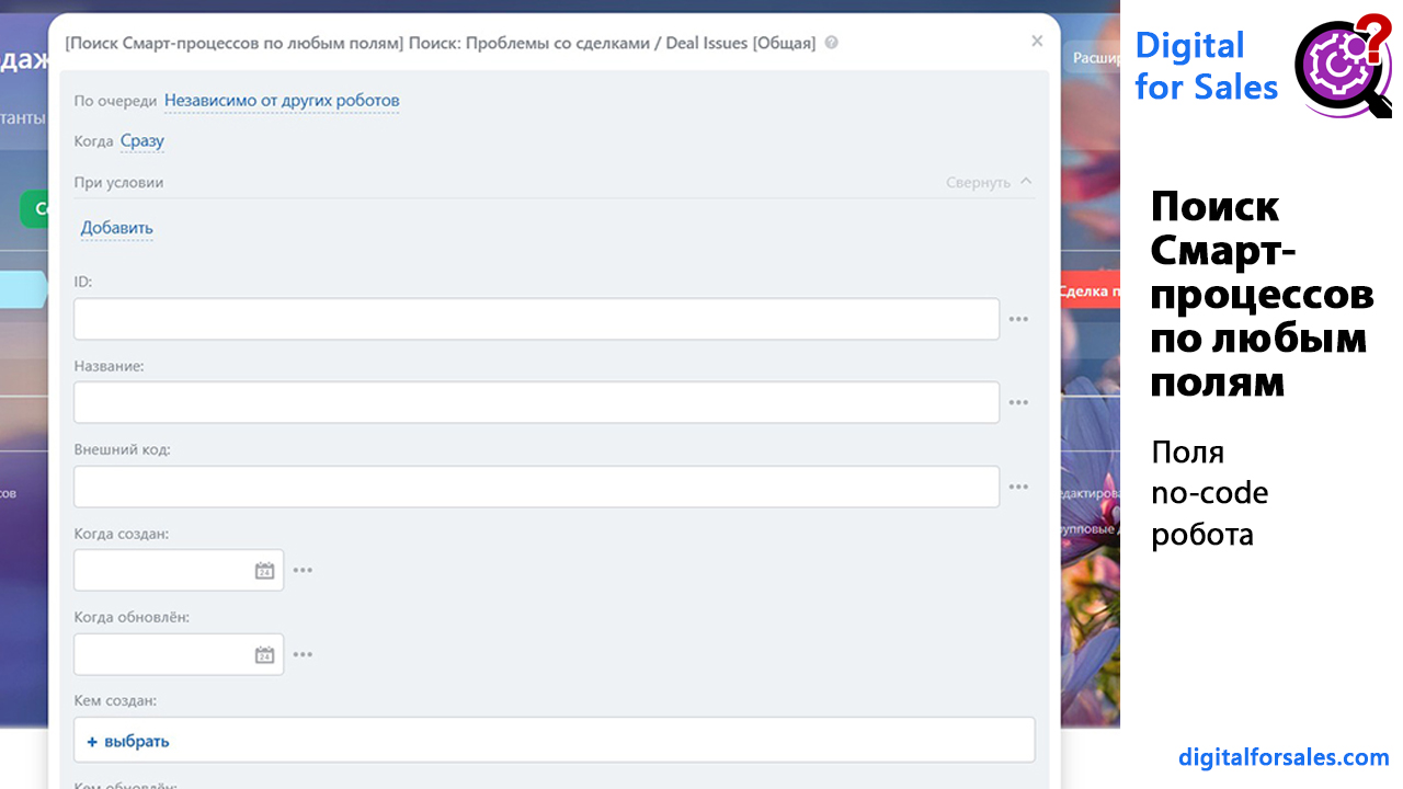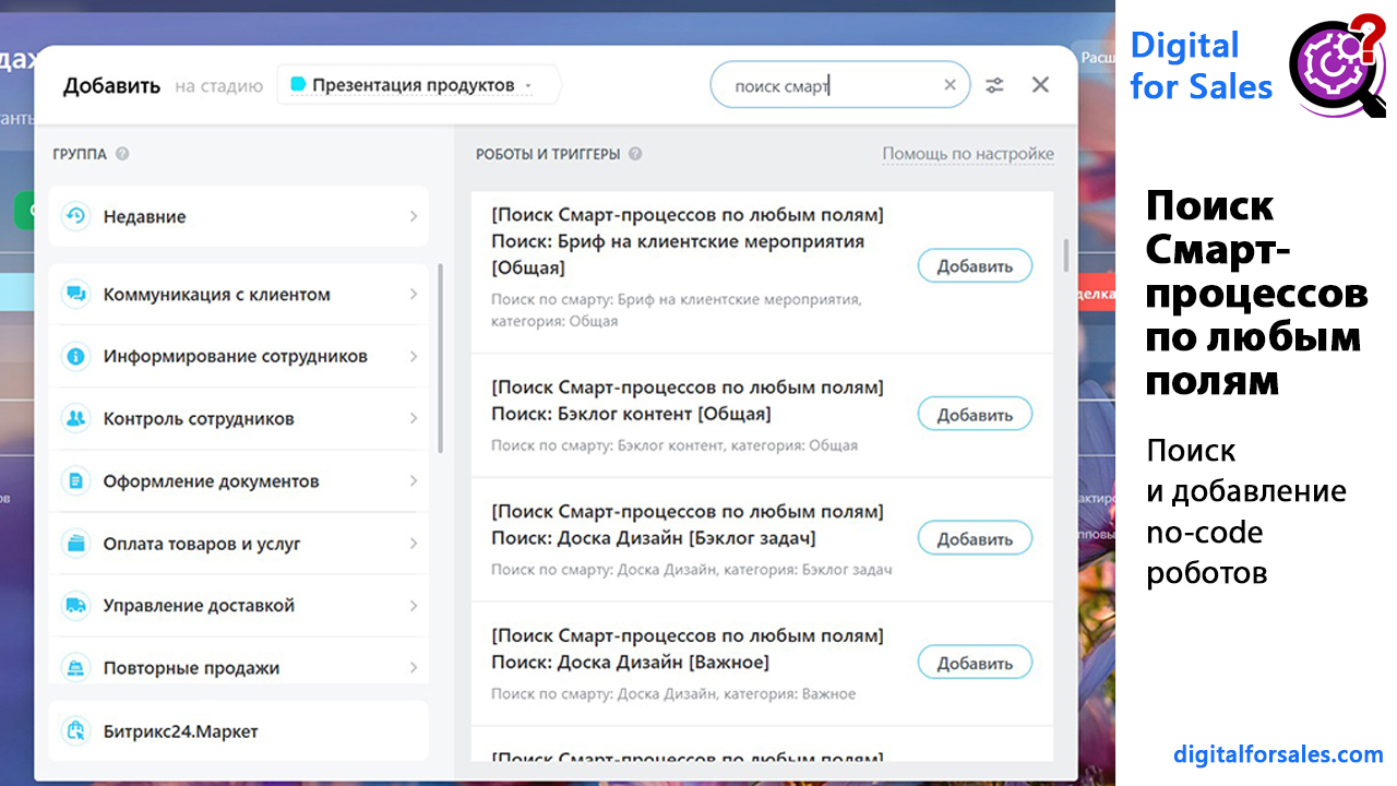 Текстовая версия видео: https://digitalforsales.com/case/poisk-smart-processov-po-lyubym-polyam-prilozhenie-dlya-bitriks24
