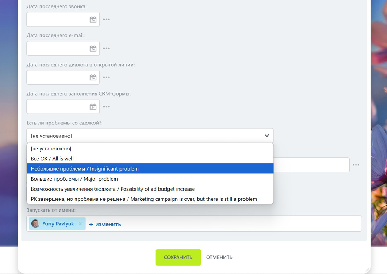 Функционал позволяет осуществлять поиск по стандартным и пользовательским полям. В том числе – сразу по нескольким (без ограничений).