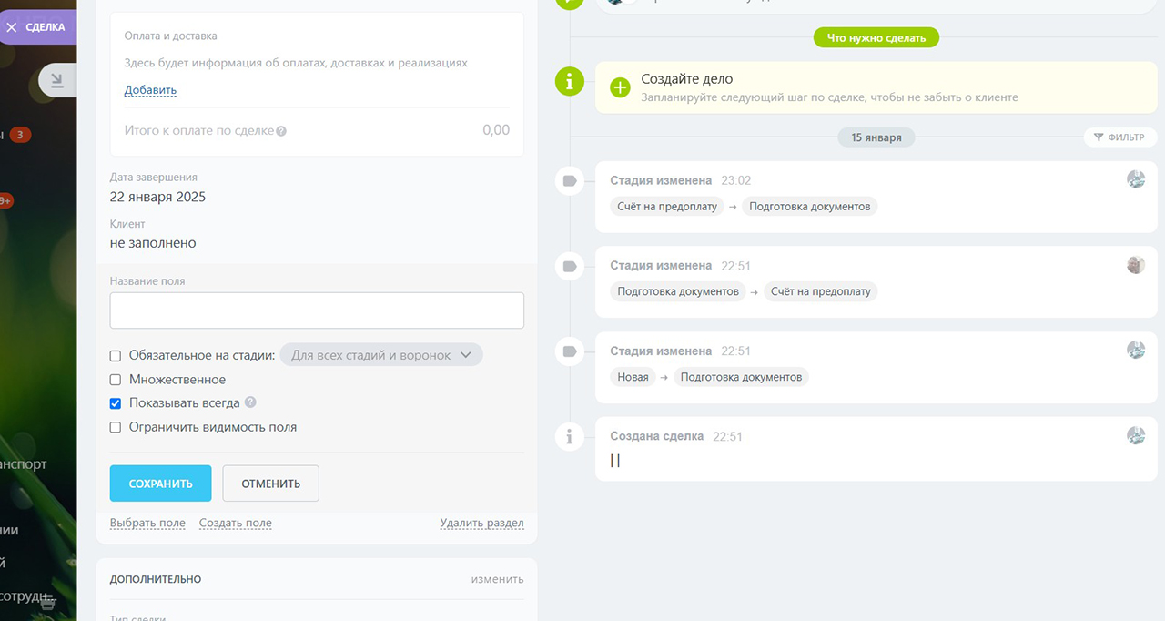 Разделительная линия между полями в карточках CRM