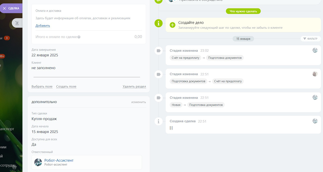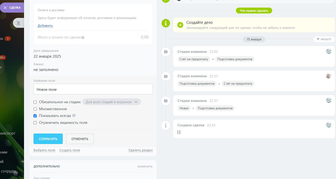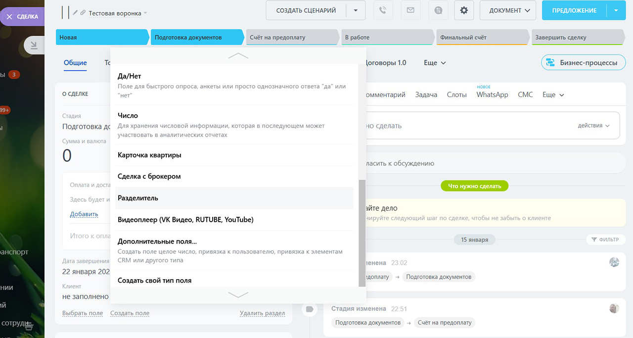 Приложение добавляет новый вид полей в карточках элементов CRM – “Разделитель”.