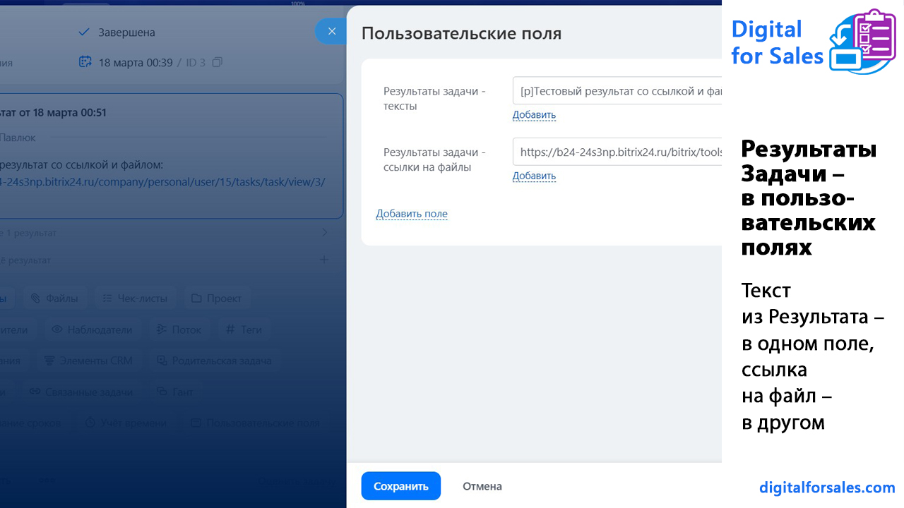 Текстовая версия видео: https://digitalforsales.com/case/rezultaty-zadachi-v-polzovatelskih-polyah-prilozhenie-dlya-crm-bitr...