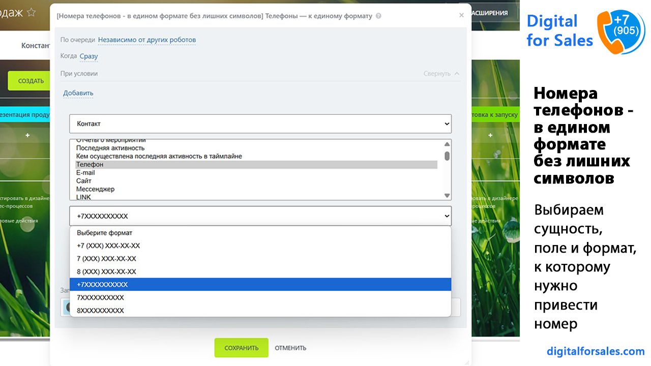 Текстовая версия видео: https://digitalforsales.com/case/nomera-telefonov-v-edinom-formate-bez-lishnih-simvolov