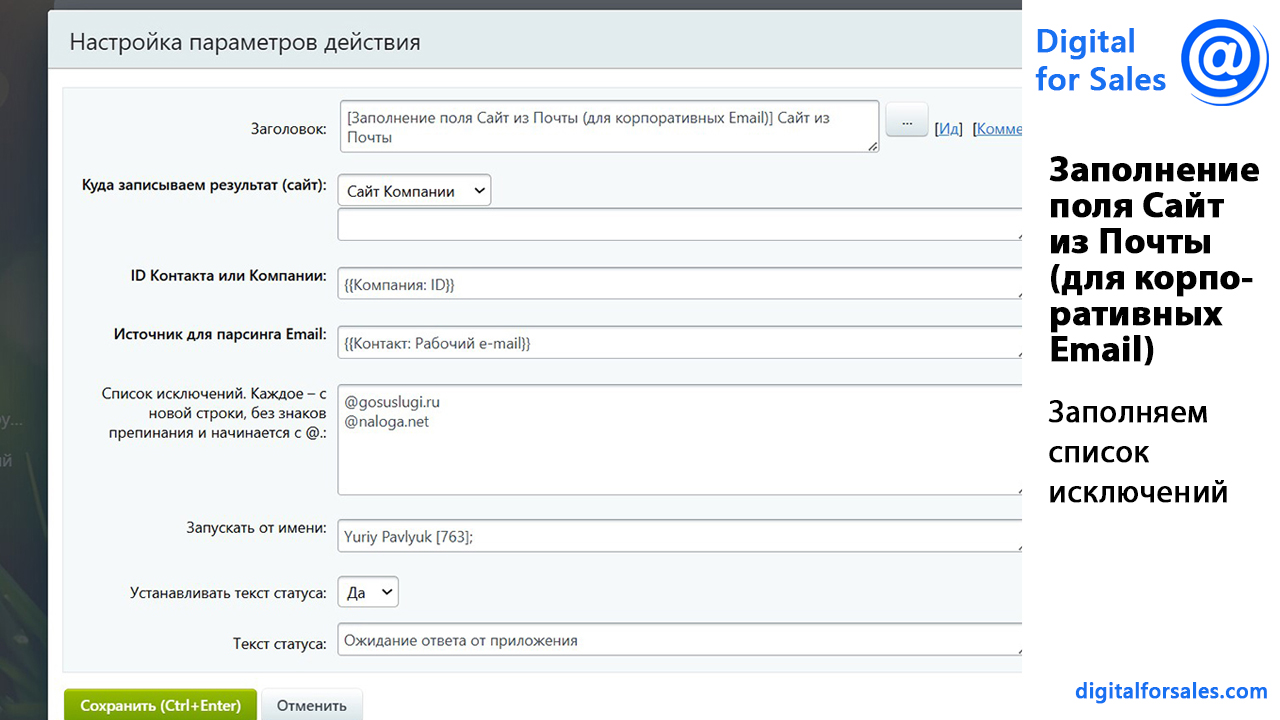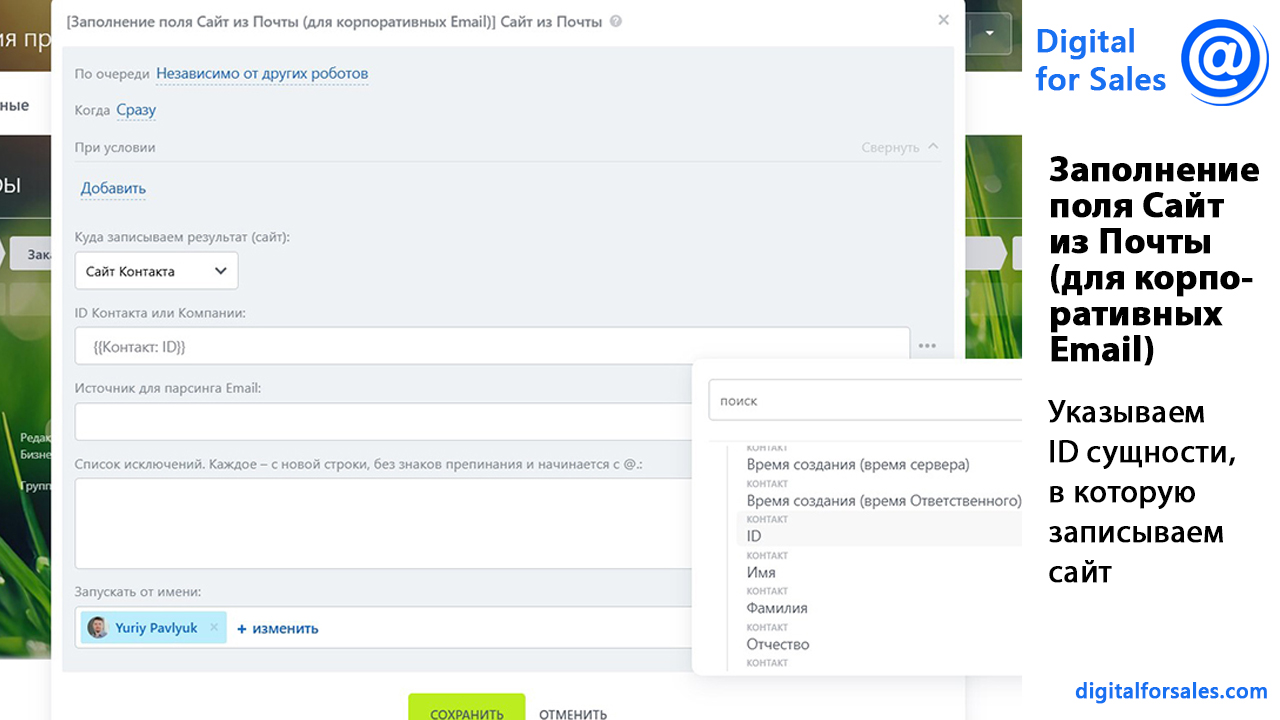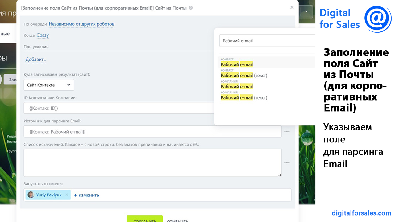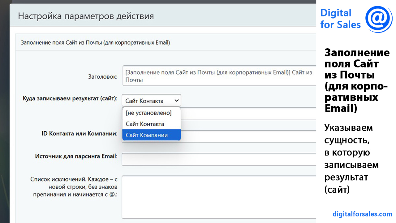 Текстовая версия видео: https://digitalforsales.com/case/zapolnenie-polya-sajt-iz-pochty-dlya-korporativnyh-email