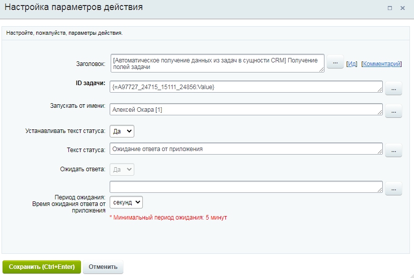 настройки данного робота, происходят через режим редактирования в дизайнере бизнес-процесса.