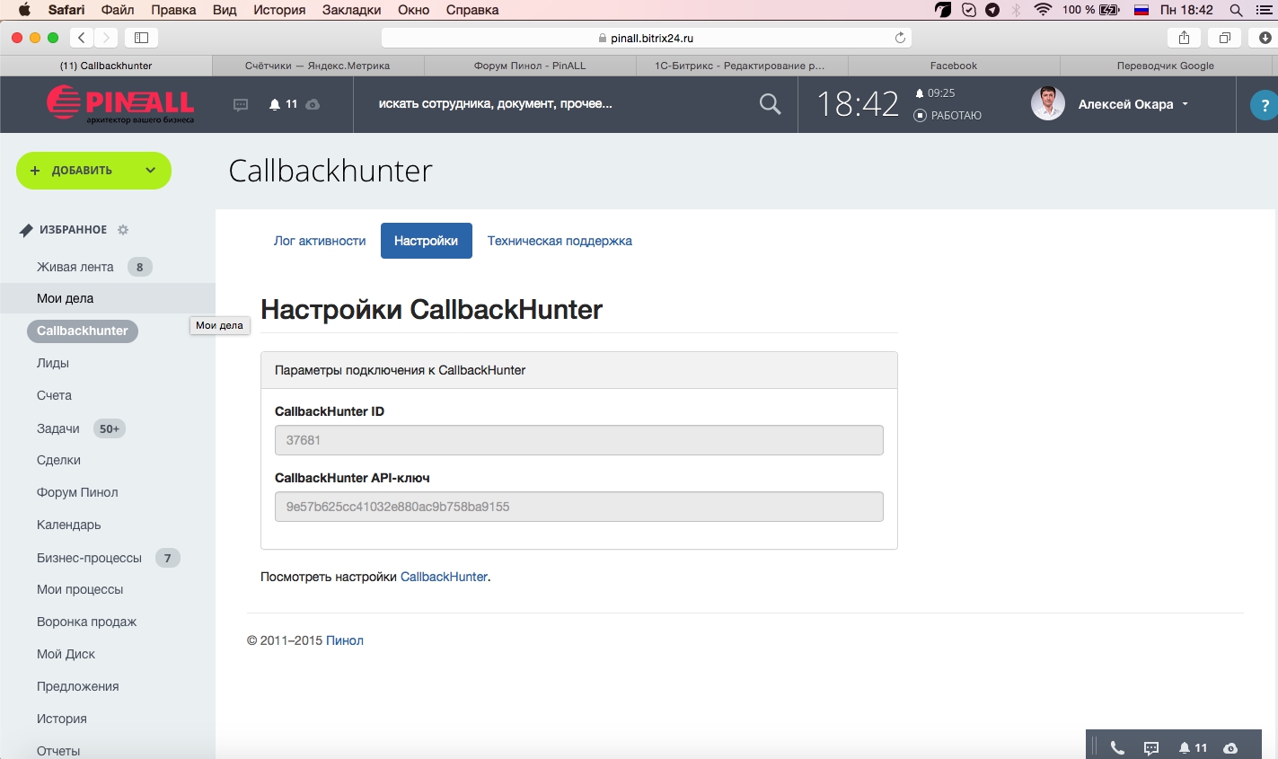5. Интеграция будет говорить админу Битрикс24, когда у вас проблемы в связке между Битрикс24 и Callbackhunter.
