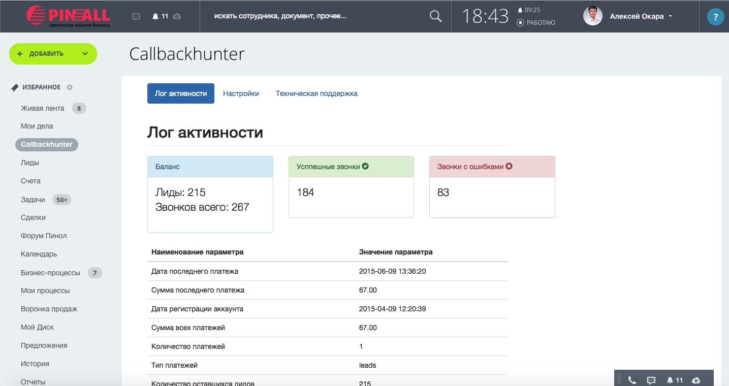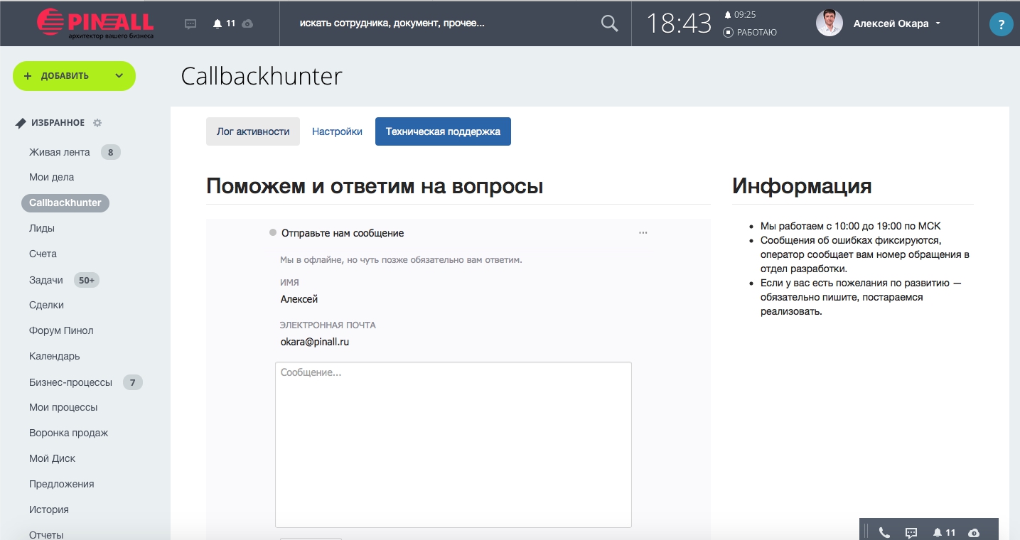Интеграция сама сообщит администратору Битрикс24, если возникнут проблемы в связке между Битрикс24 и CallbackHunter.