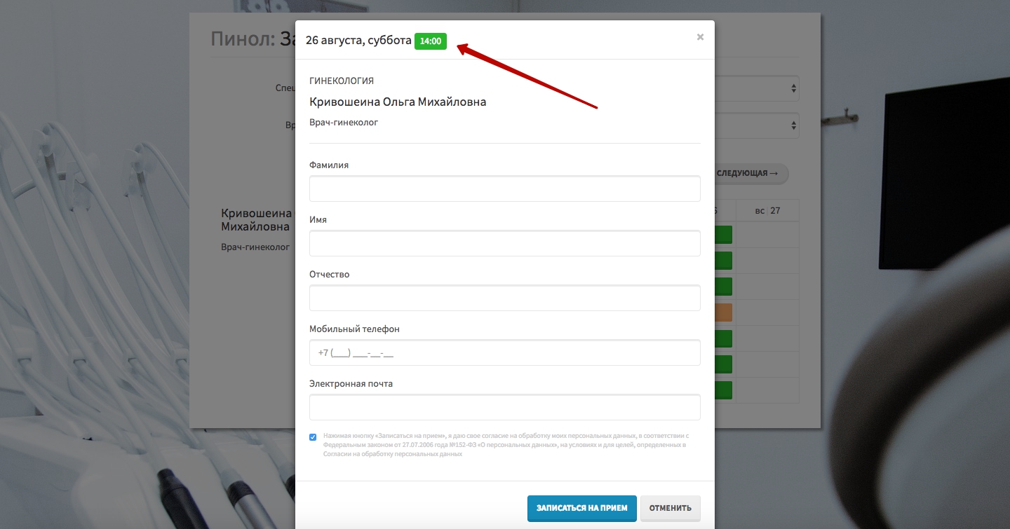 Запись на прием к врачу в платформе Пинкит