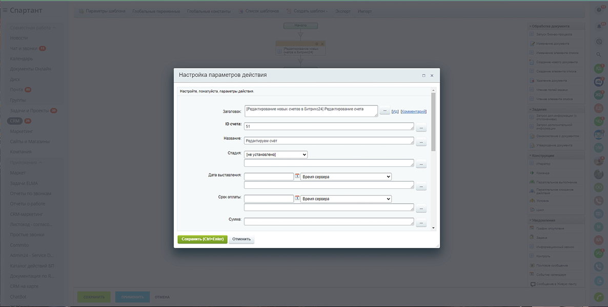 Редактирование новых счетов в Битрикс24