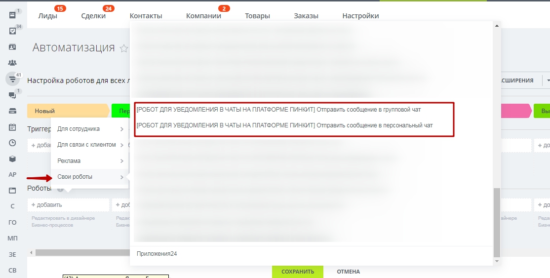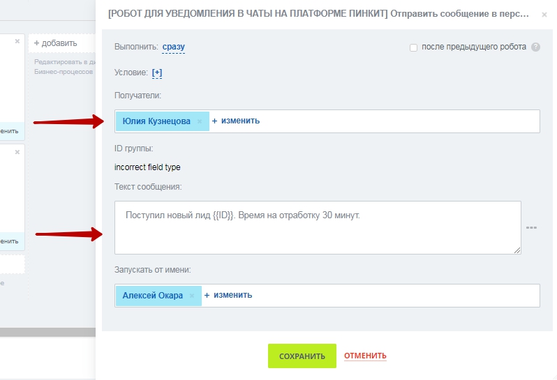 Или, например, если в компании есть групповой чат менеджеров для обсуждения новых сделок, то можно автоматически перенаправлять такие уведомления им в групповой чат.