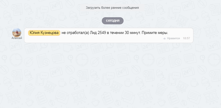 Отправляйте уведомления из CRM о поступлении Лида, смене его статуса, закрытии сделки и т.д. прямо в персональный чат сотруднику. Согласитесь, менеджеру психологически сложнее будет не заметить сообщение от имени руководителя в своем персональном чате, чем пропустить очередное уведомление в "колокольчике".