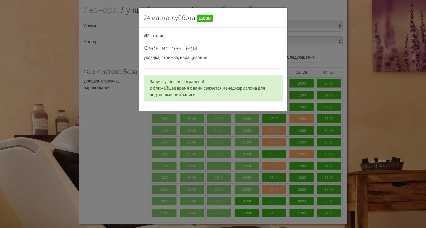 Запись в салоне/парикмахерской/барбершопе на платформе Пинкит